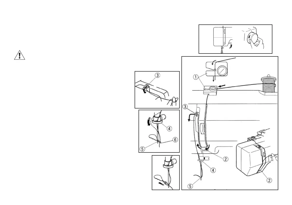 1: Draw the end of thread around under the thread guide.