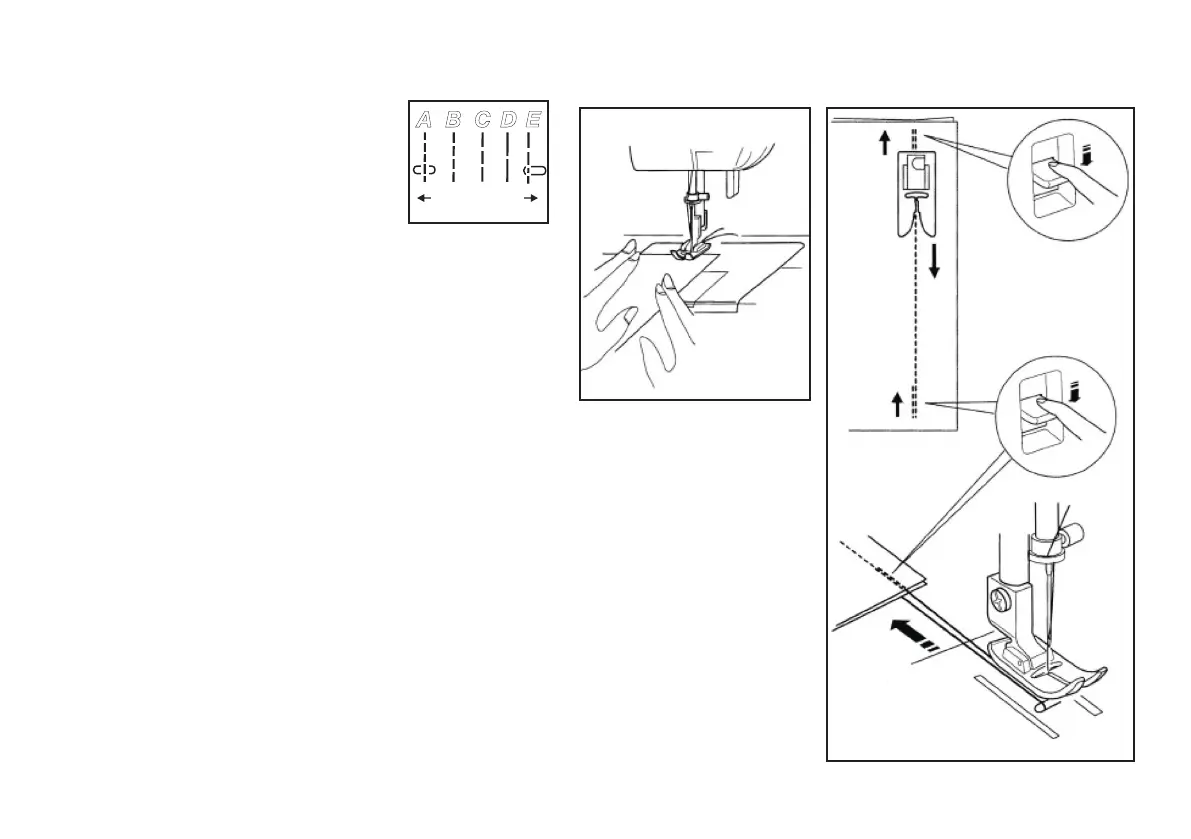 Press the reverse stitch lever and sew several reverse stitches to fasten the seam.1.