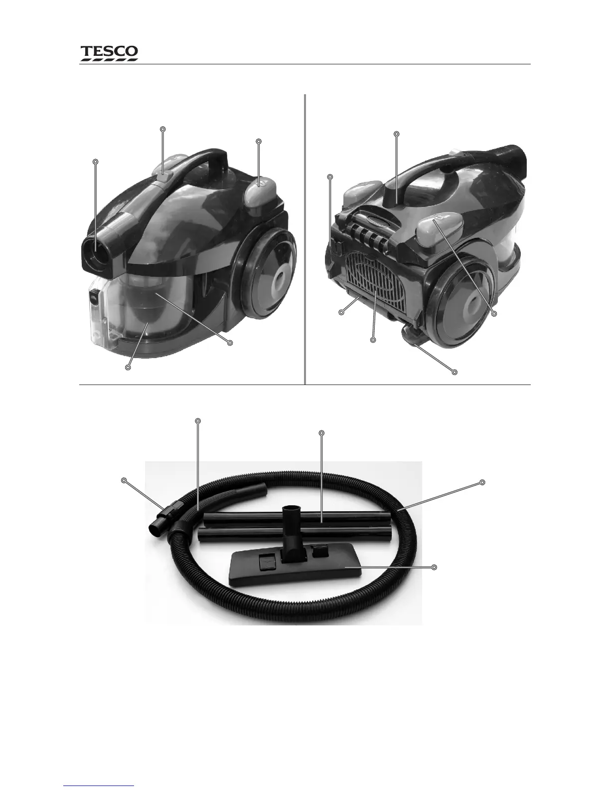 Identify the cleaner components from the illus-trations. If any items are missing or damaged, contact your nearest Tesco store for