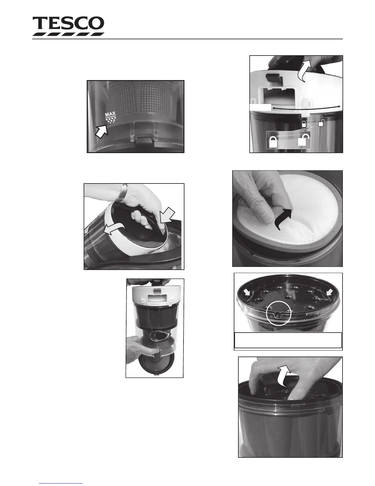 on the dust cup and rotate