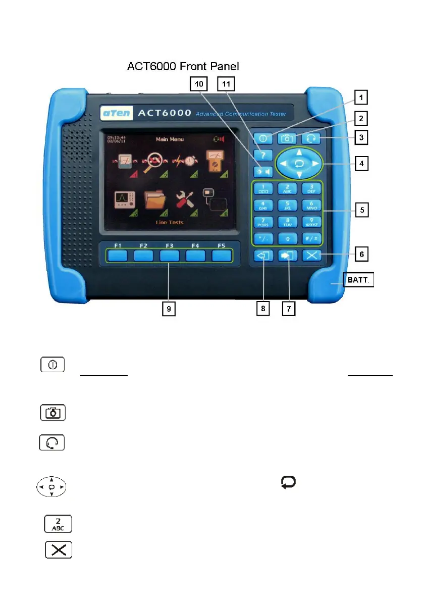 2- (Hold) Key for the temporary freezing of the measurement. This command