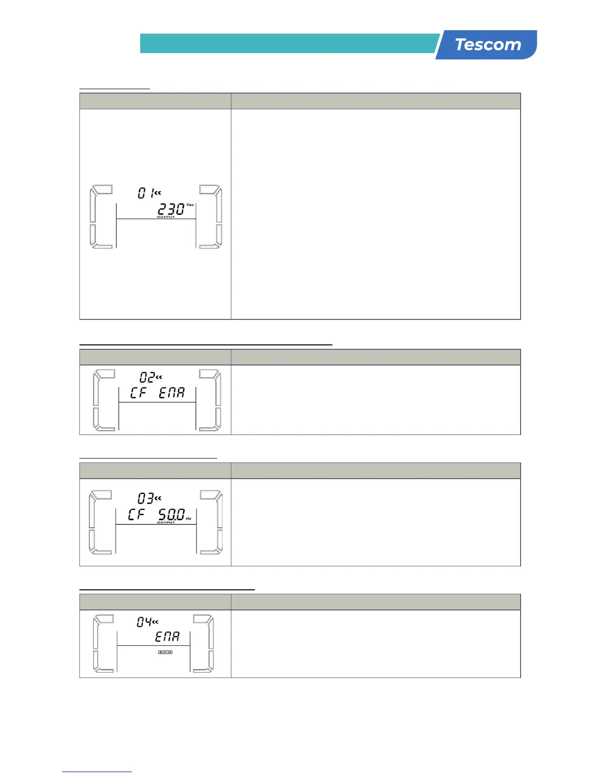 CF 60: παρουσιάζει την τάση εξόδου να είναι 60Hz