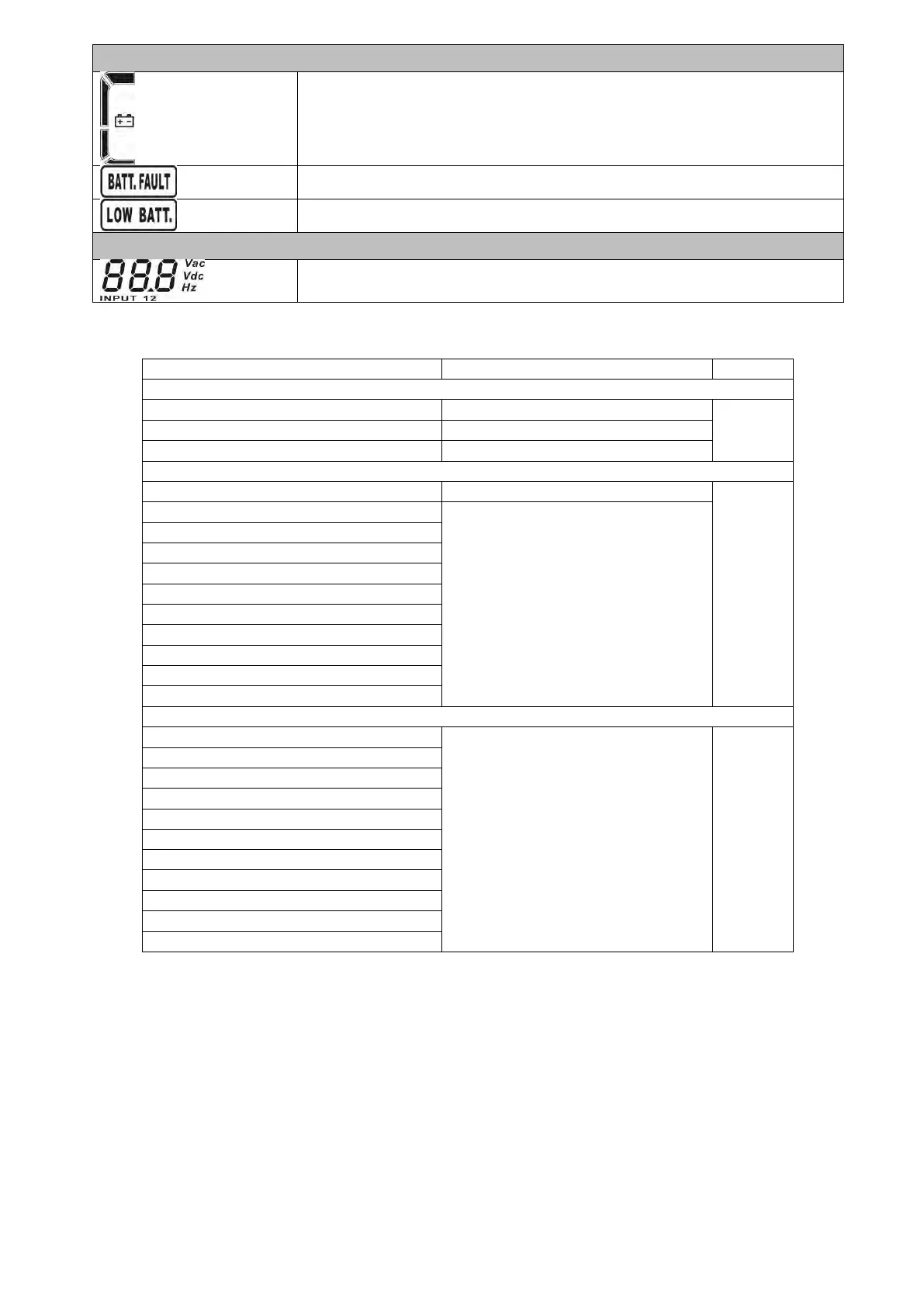 Vac: Giriş voltajı, Vdc: akü voltajı, Hz: giriş frekansı