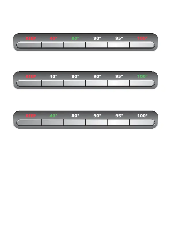 Stiskněte postupně tlačítka 100°, KEEP, 40°. Aktuální teplota se zobrazí zeleně, tlačítka 100°,