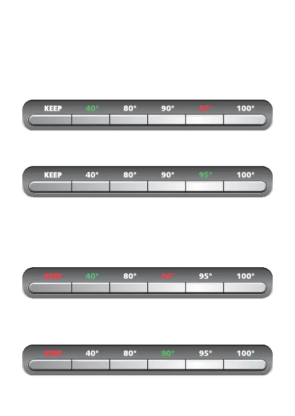 KEEP drücken. Die Ist-Temperatur leuchtet grün, die eingestellte Temperatur und die Taste