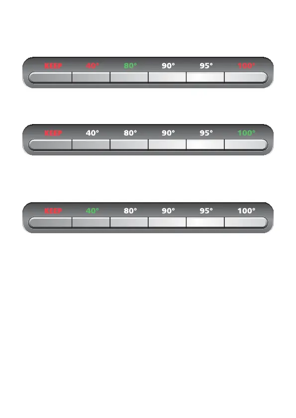Die Tasten 100°, KEEP, 40° nacheinander drücken. Die Ist-Temperatur leuchtet grün, die Tas-