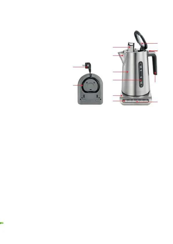 Poser le socle avec la bouilloire sur une surface lisse et sèche, hors de portée de l’eau, la cha-