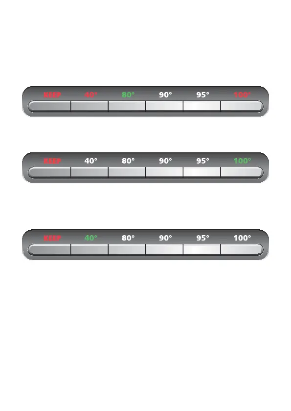 Appuyer successivement sur les boutons 100°, KEEP, 40°. La température actuelle prendra