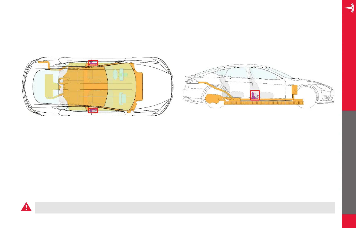 Seat belt pre-tensioners are located by the B-pillars, as shown below in red.
