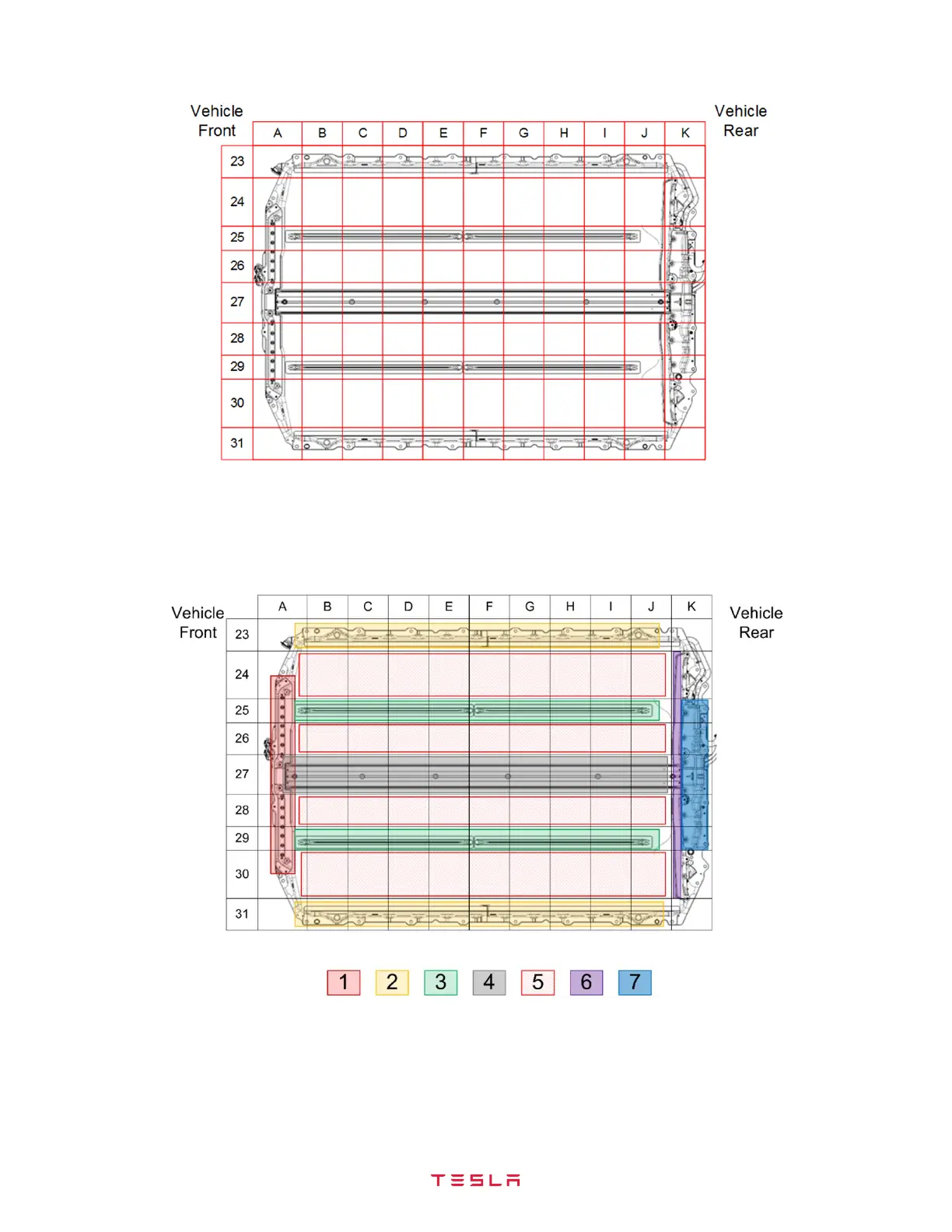 The bottom of the HV battery assembly can be divided into a grid to make it easier to track and report damage (Figure 4).