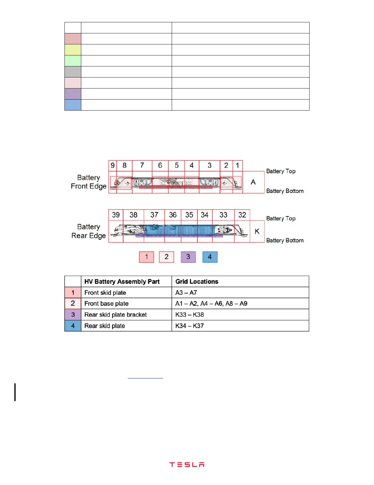 The grid locations for the front and rear edges of the HV battery assembly are shown in Figure 6.