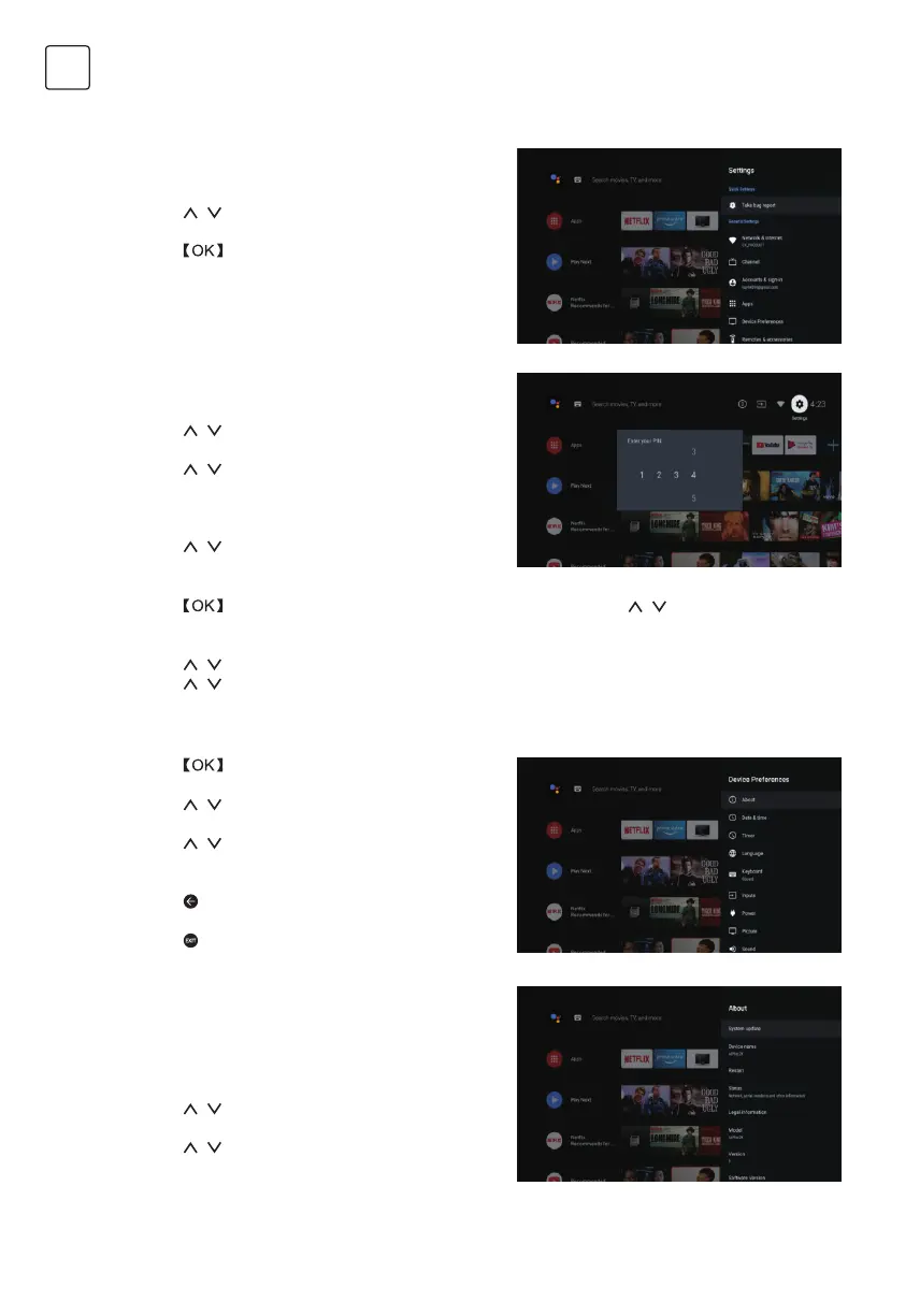 / στο τηλεχειριστήριο για να επιλέξετε τις επιλογές Σχετικά, Ημερομηνία και ώρα, Χρονοδιακόπτης,