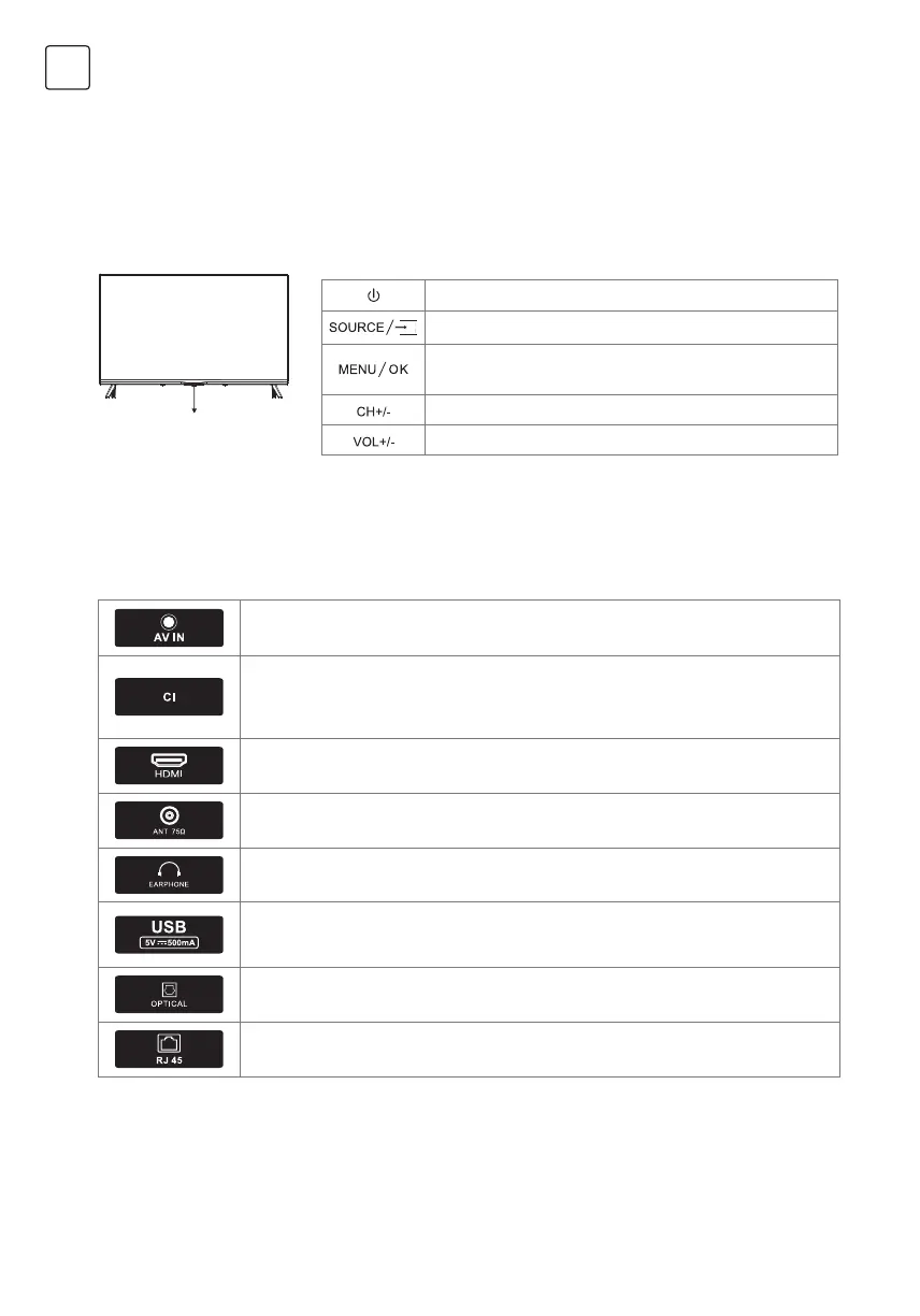 GUMBI TELEVIZORJA IN PRIKLJUČNEGA VMESNIKA