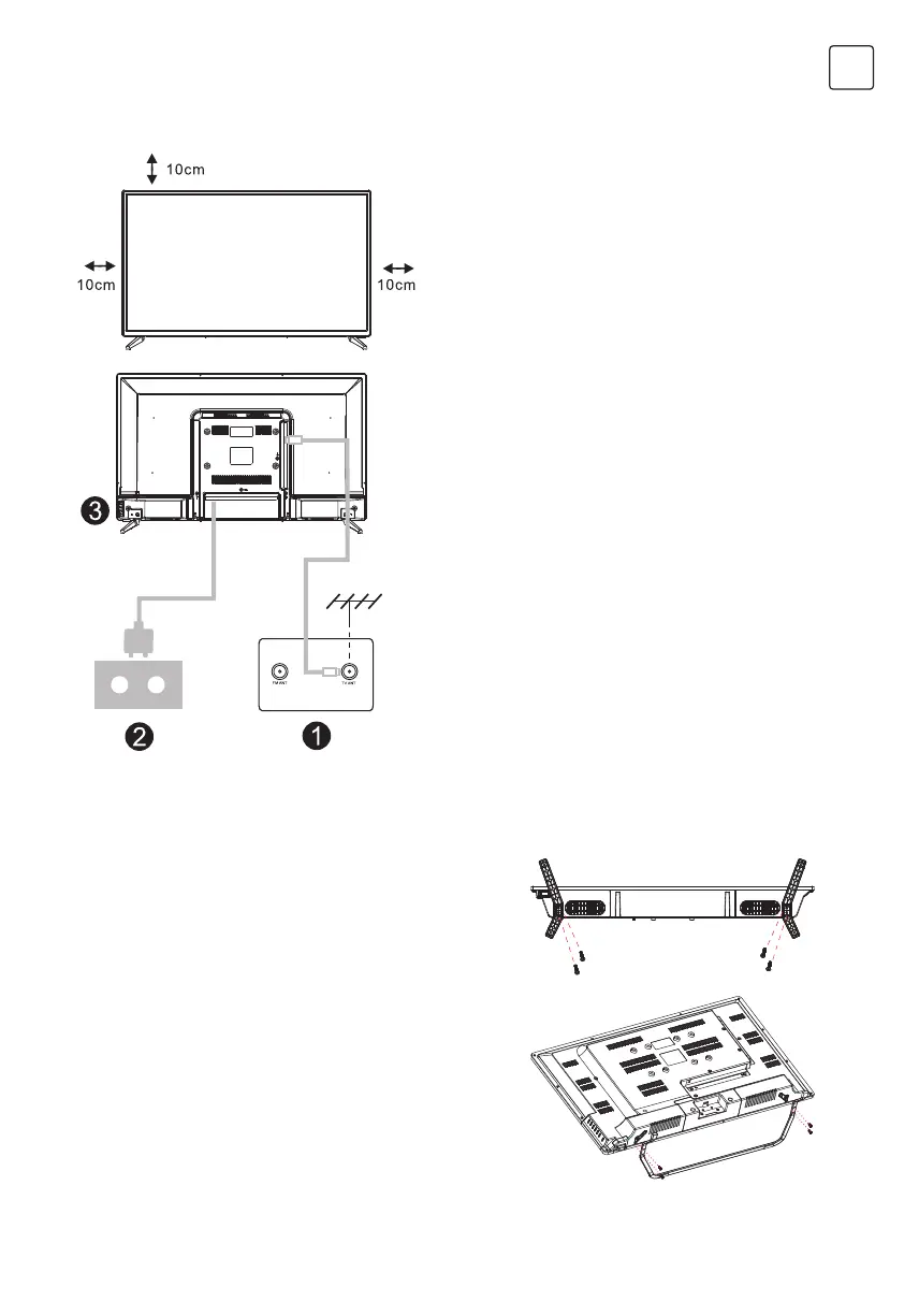 navzdol in privijte vrat podnožja na televizor.
