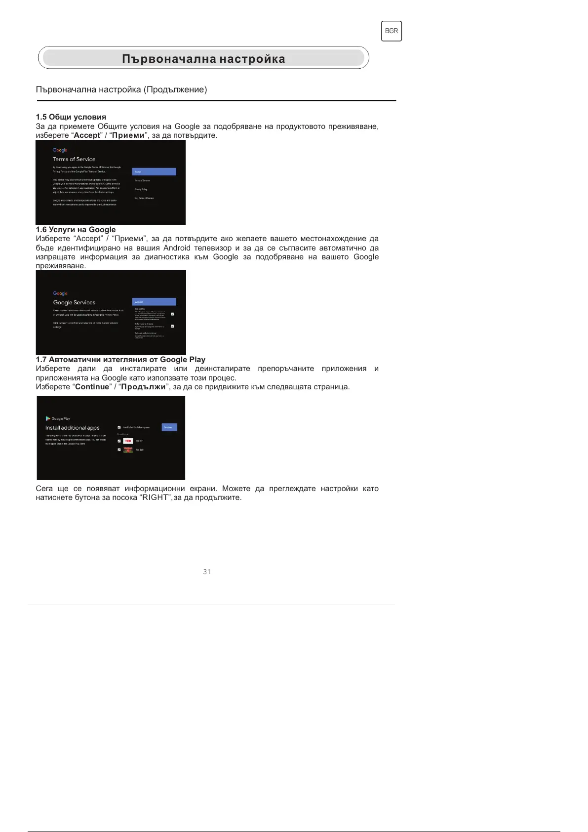 напътства как да настроите вашия телевизор. Моля, следвайте ръководството, за да