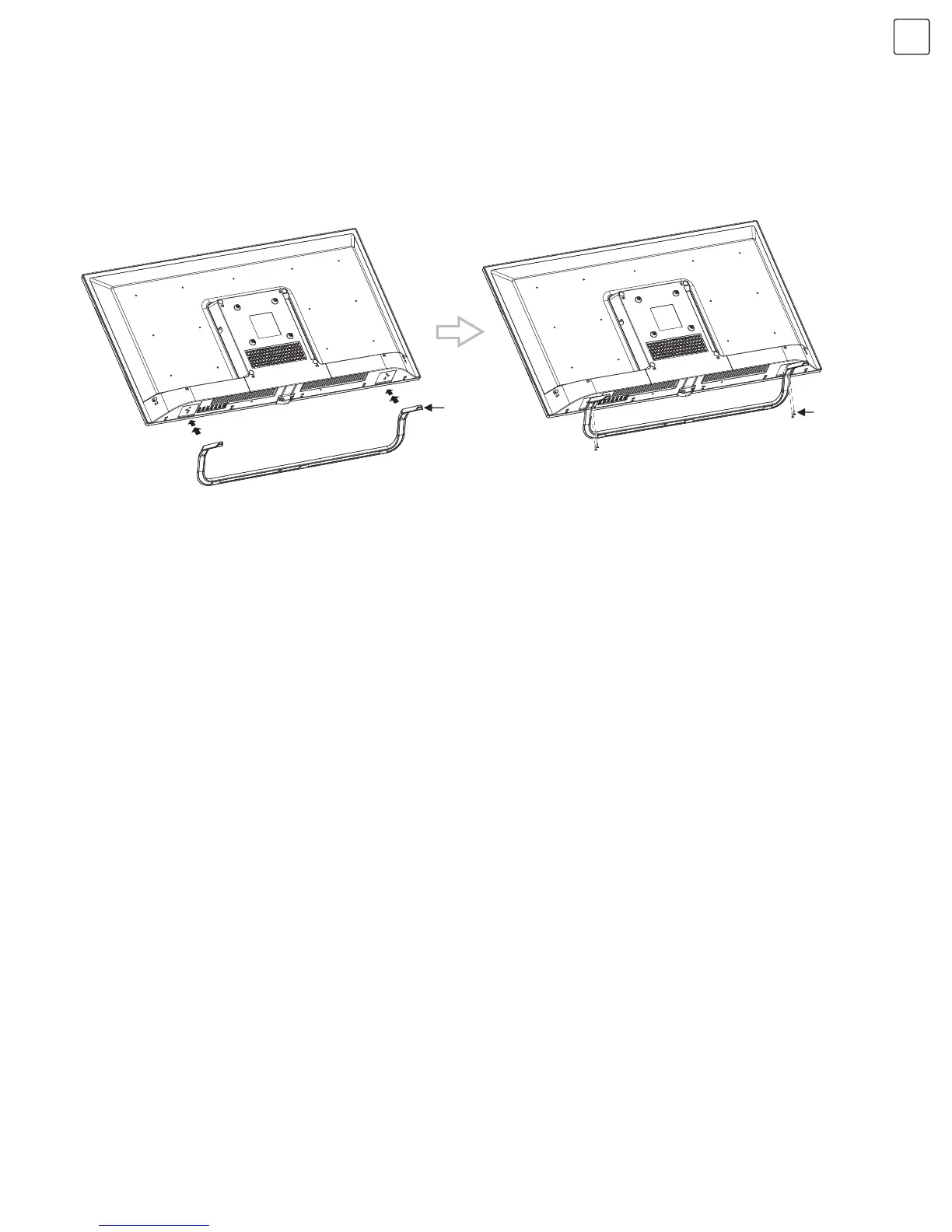 stranu uređaja kao što pokazuju strelice na slici, namjestite tako da se otvori na postolju i televizoru poklapaju, a zatim