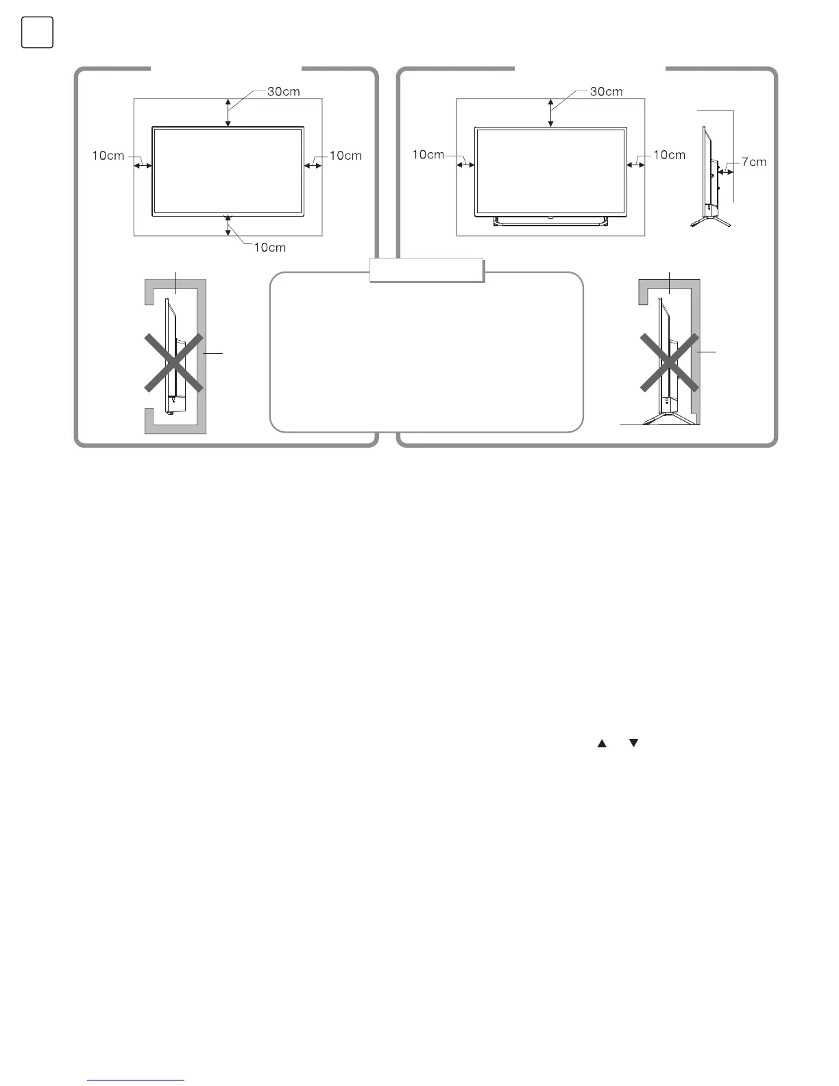 • Не монтирайте телевизора срещу климатик, тъй като вътрешният панел на дисплея може да кондензира и да