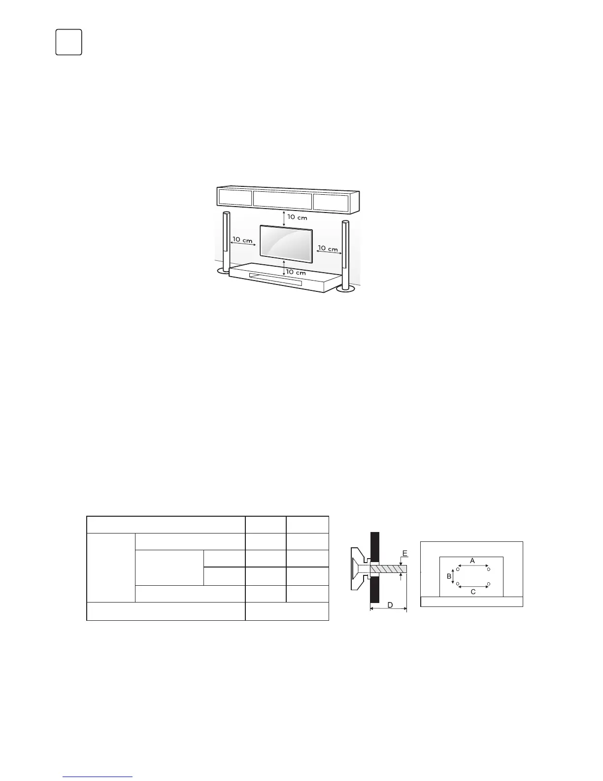 • Use th e screws and wall mounts that meet the following specifications. Any damages or