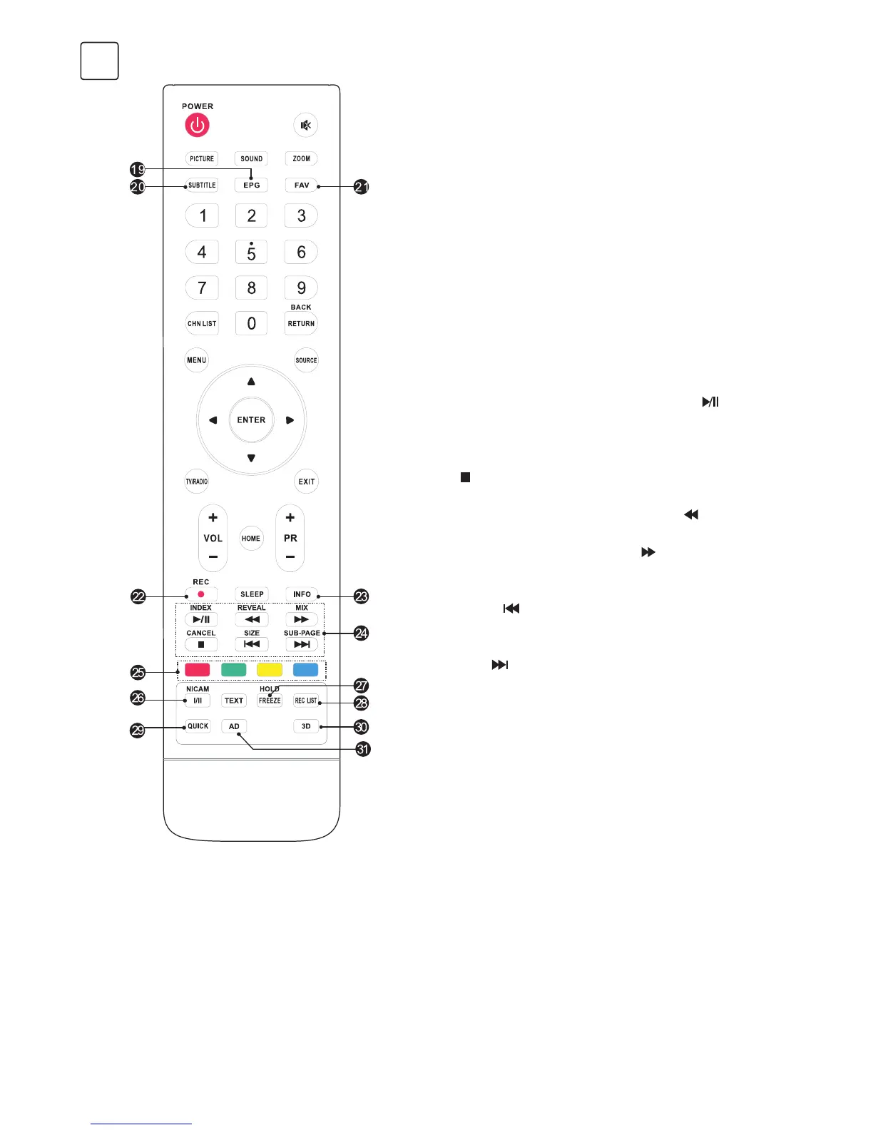 21. FAV (Omiljeni kanali) Pritisnite za prikaz omiljenih