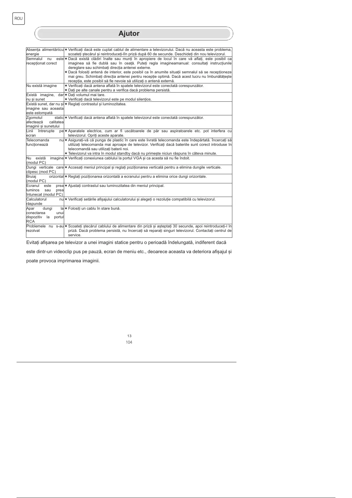 Evitați afișarea pe televizor a unei imagini statice pentru o perioadă îndelungată, indiferent dacă