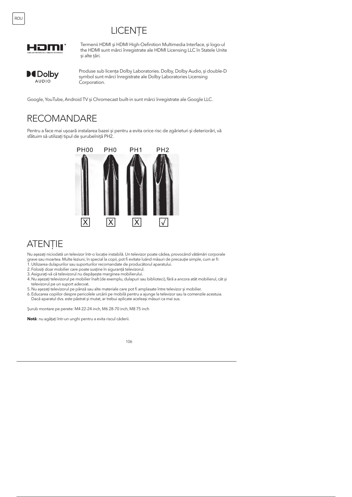 sfătuim să utilizați tipul de șurubelniță PH2.