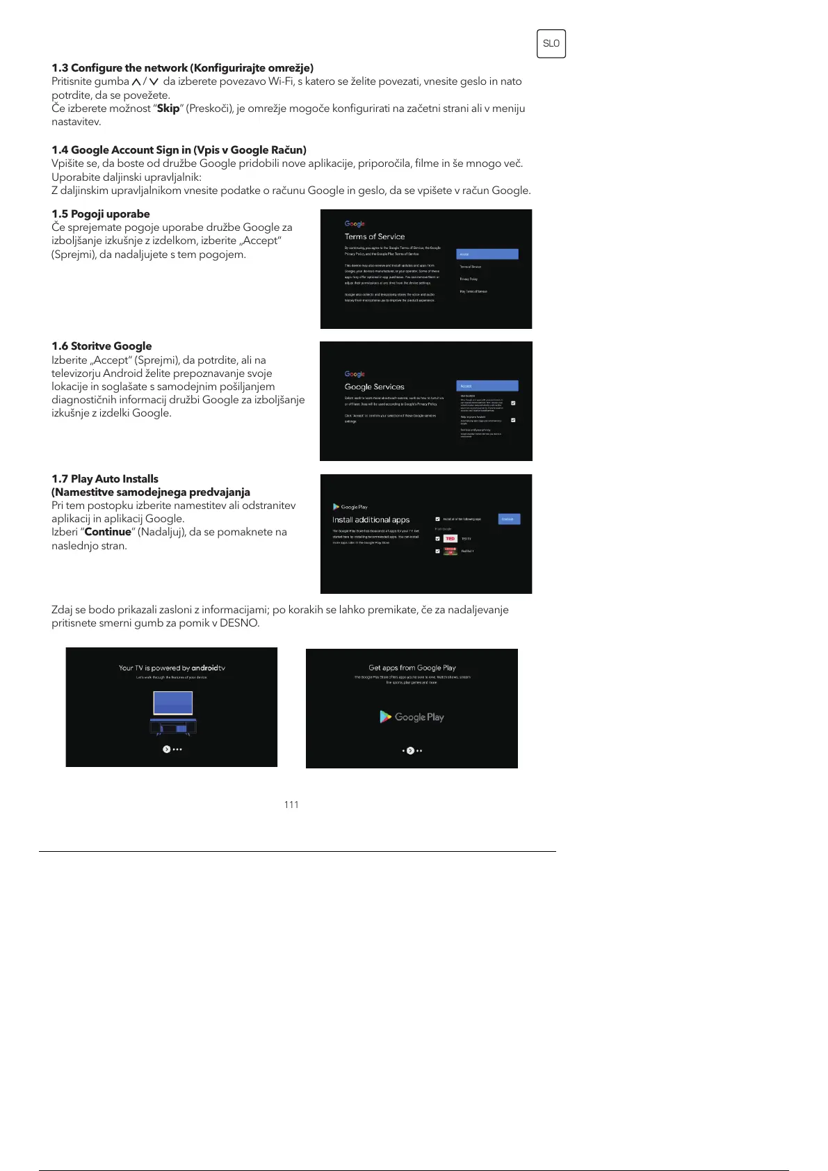 Z daljinskim upravljalnikom vnesite podatke o računu Google in geslo, da se vpišete v račun Google.