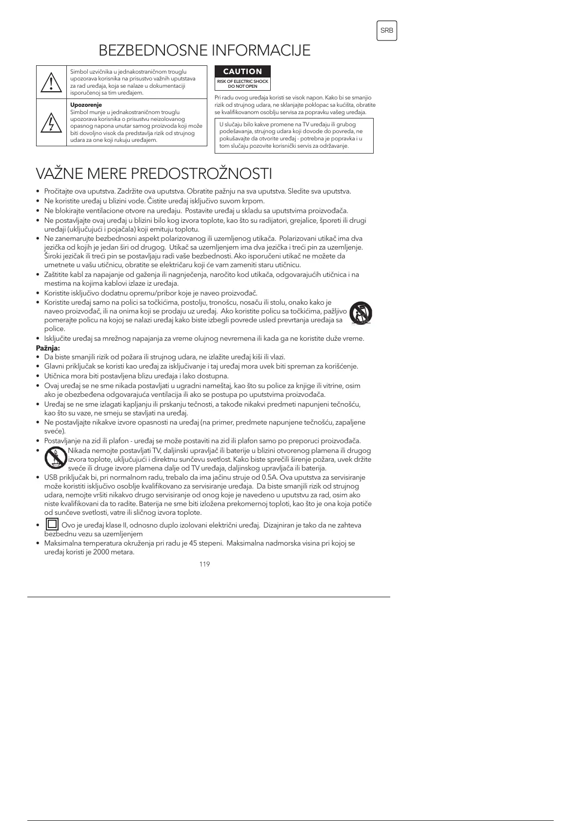 • USB priključak bi, pri normalnom radu, trebalo da ima jačinu struje od 0.5A. Ova uputstva za servisiranje
