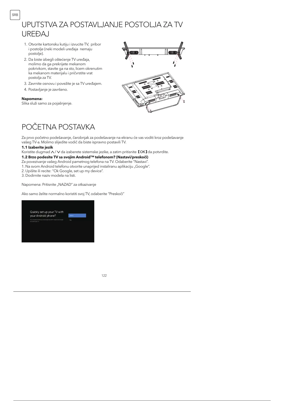 vašeg TV-a. Molimo slijedite vodič da biste ispravno postavili TV.