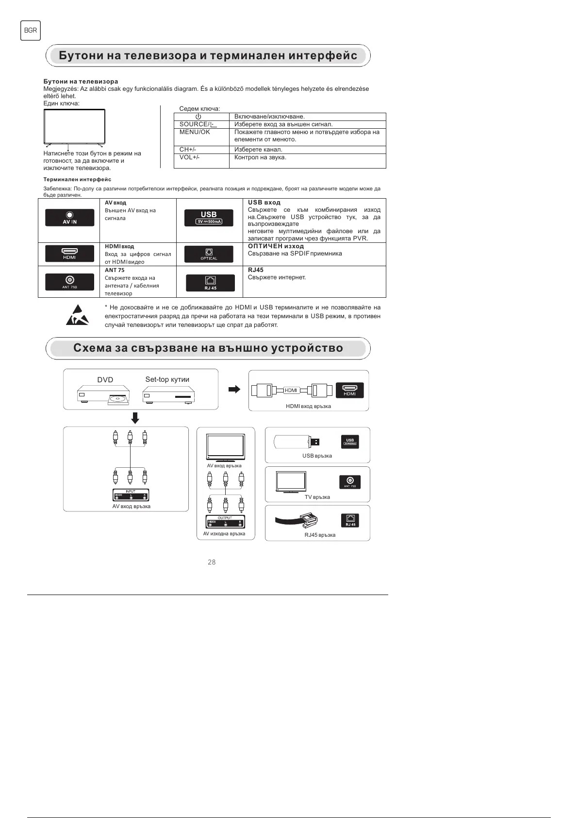 * Не докосвайте и не се доближавайте до HDMI и USB терминалите и не позволявайте на