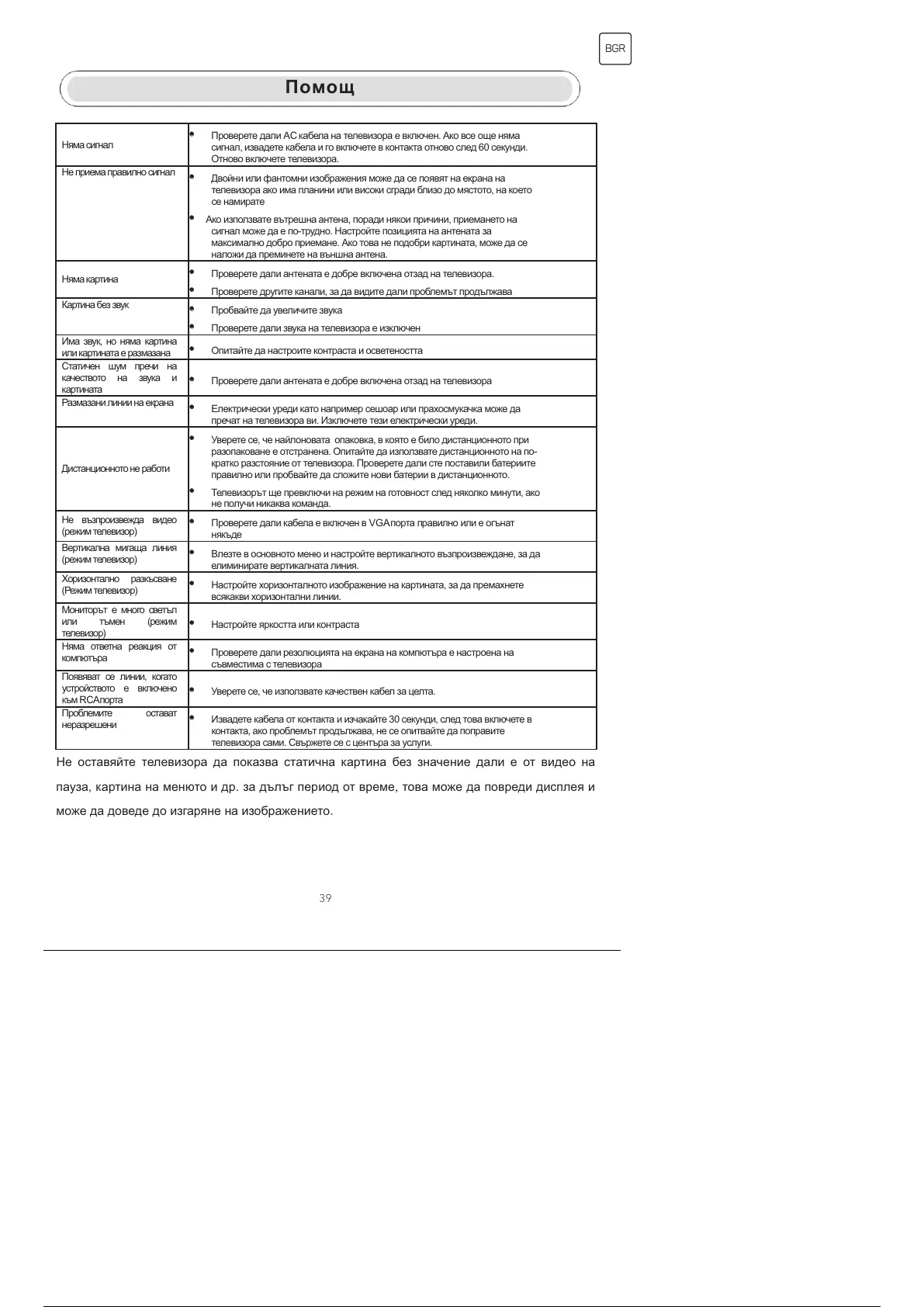 • Телевизорът ще превключи на режим на готовност след няколко минути, ако
