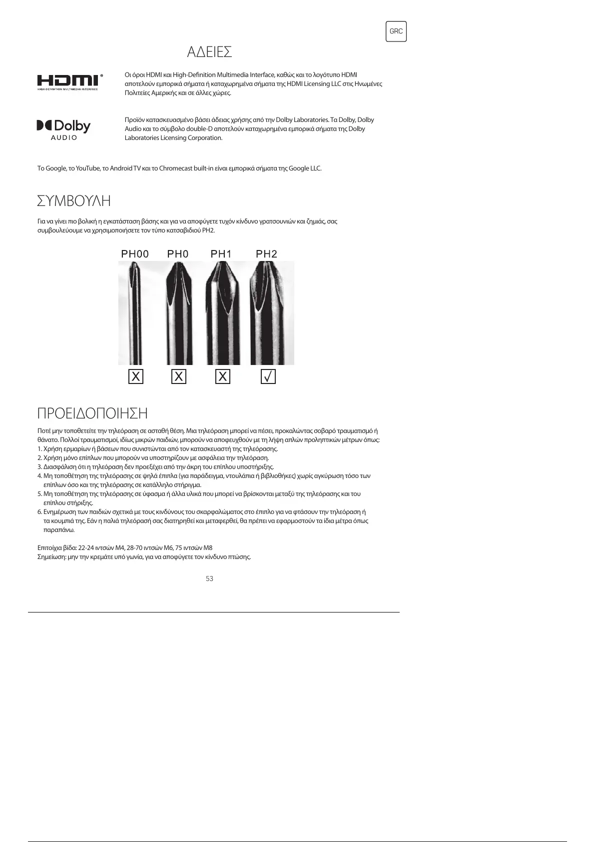 συμβουλεύουμε να χρησιμοποιήσετε τον τύπο κατσαβιδιού PH2.