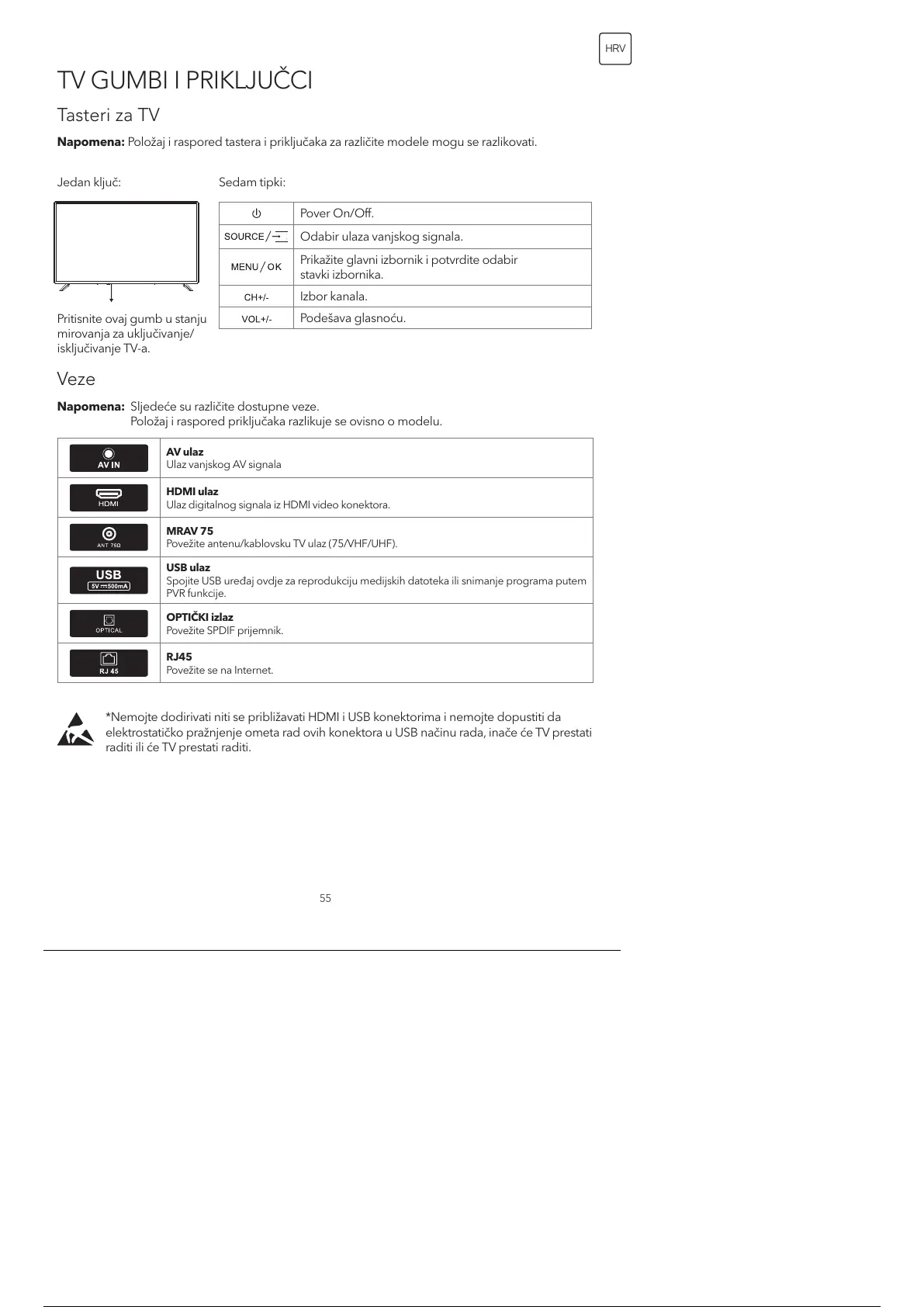 elektrostatičko pražnjenje ometa rad ovih konektora u USB načinu rada, inače će TV prestati