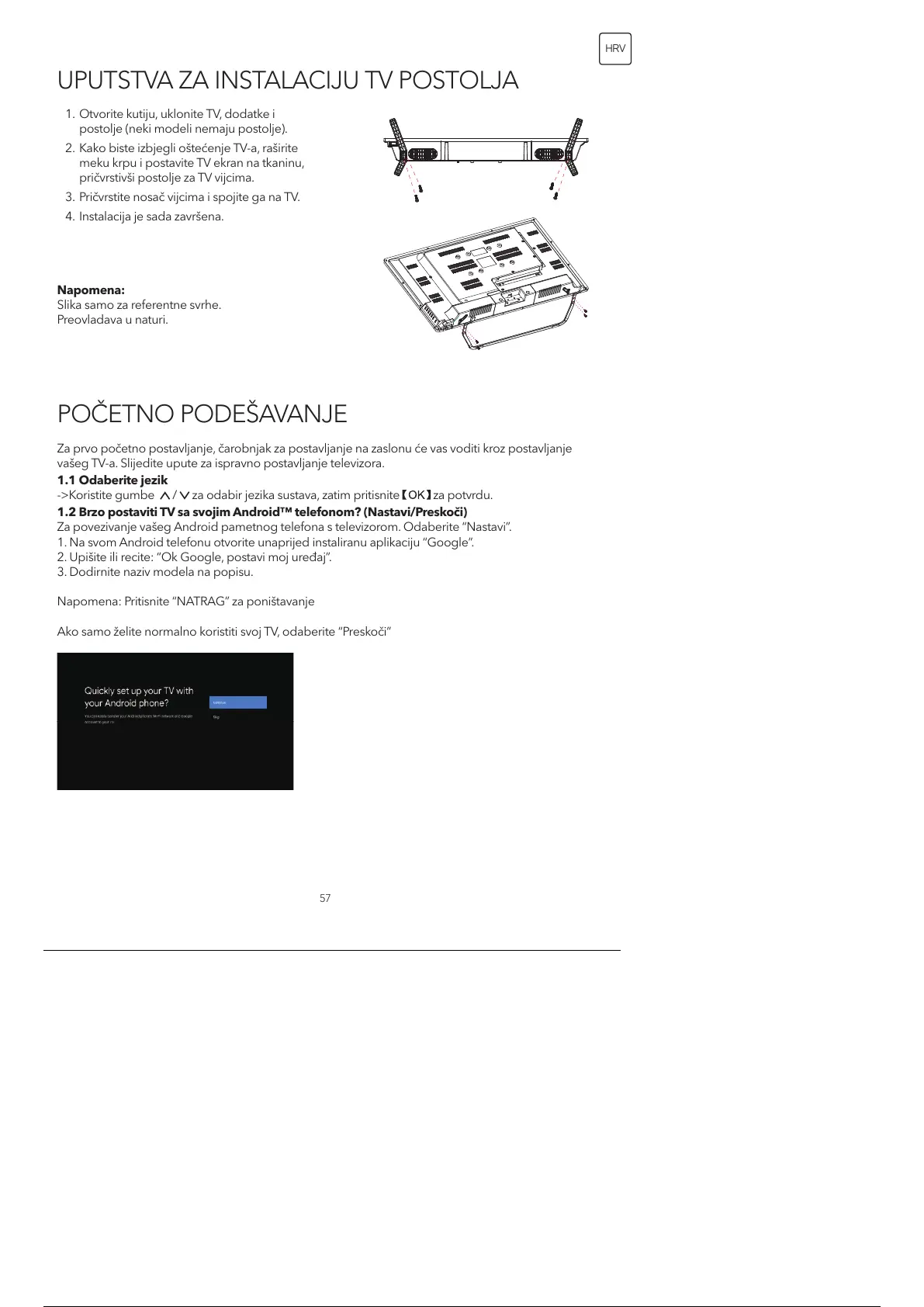 vašeg TV-a. Slijedite upute za ispravno postavljanje televizora.