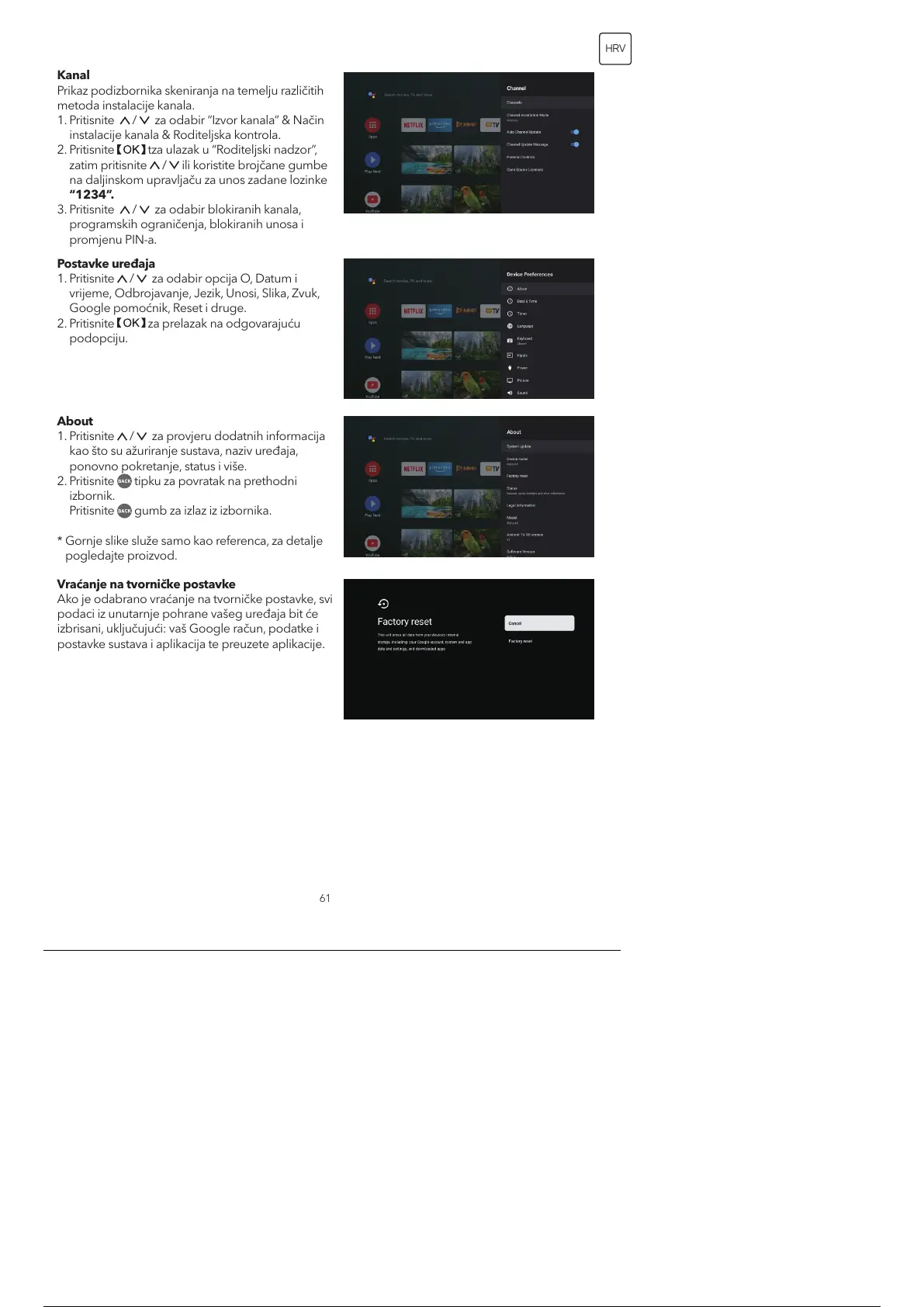 Ako je odabrano vraćanje na tvorničke postavke, svi