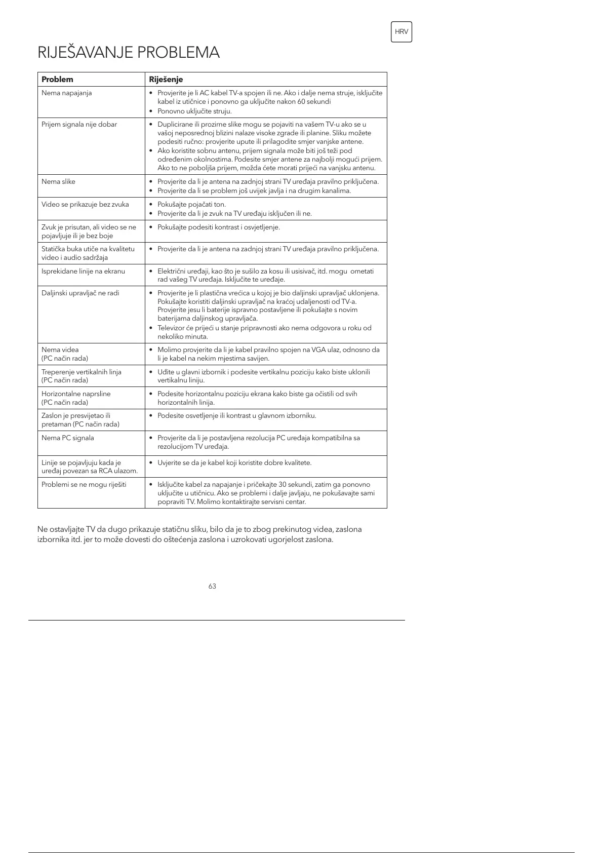 popraviti TV. Molimo kontaktirajte servisni centar.