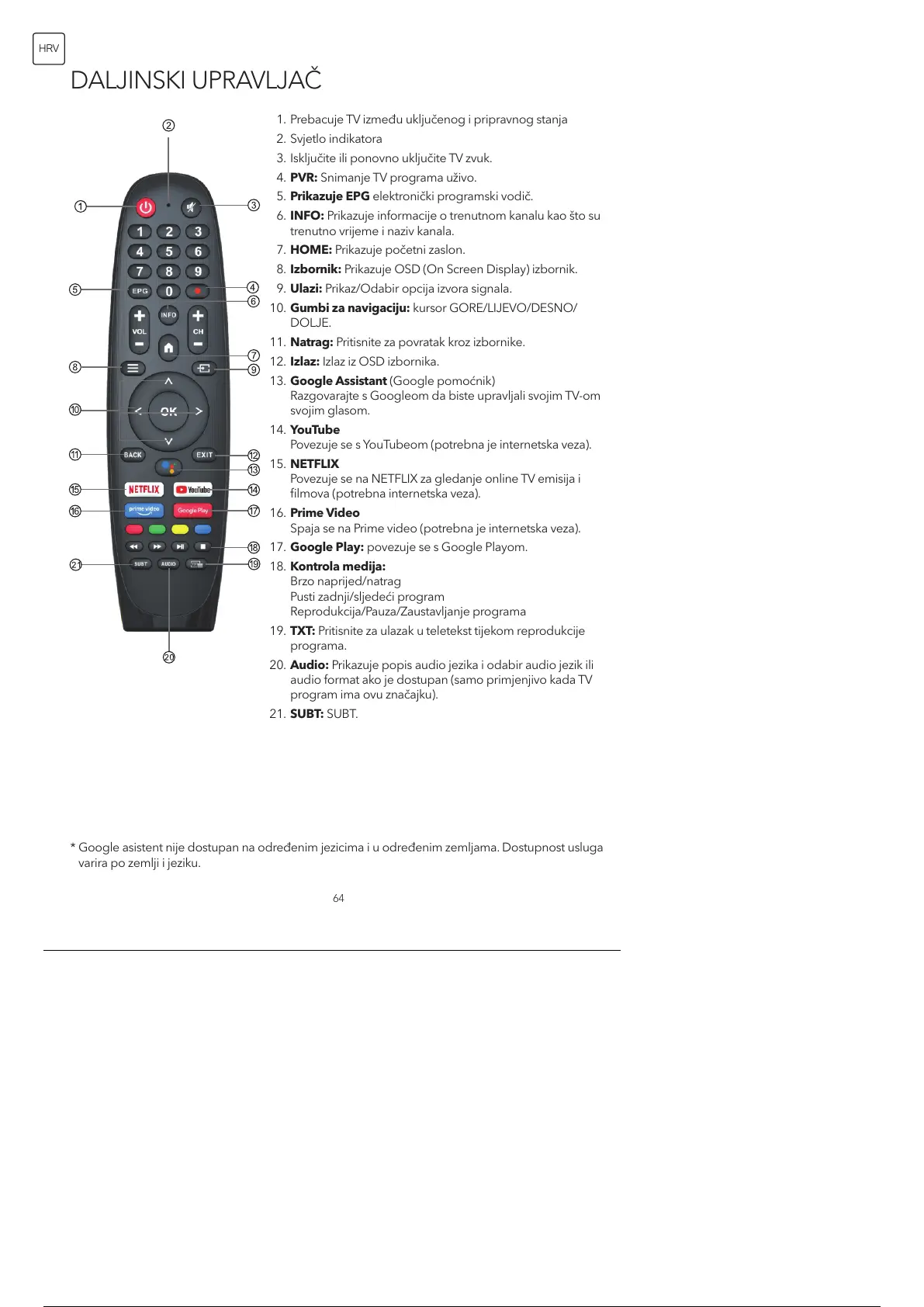 20. Audio: Prikazuje popis audio jezika i odabir audio jezik ili