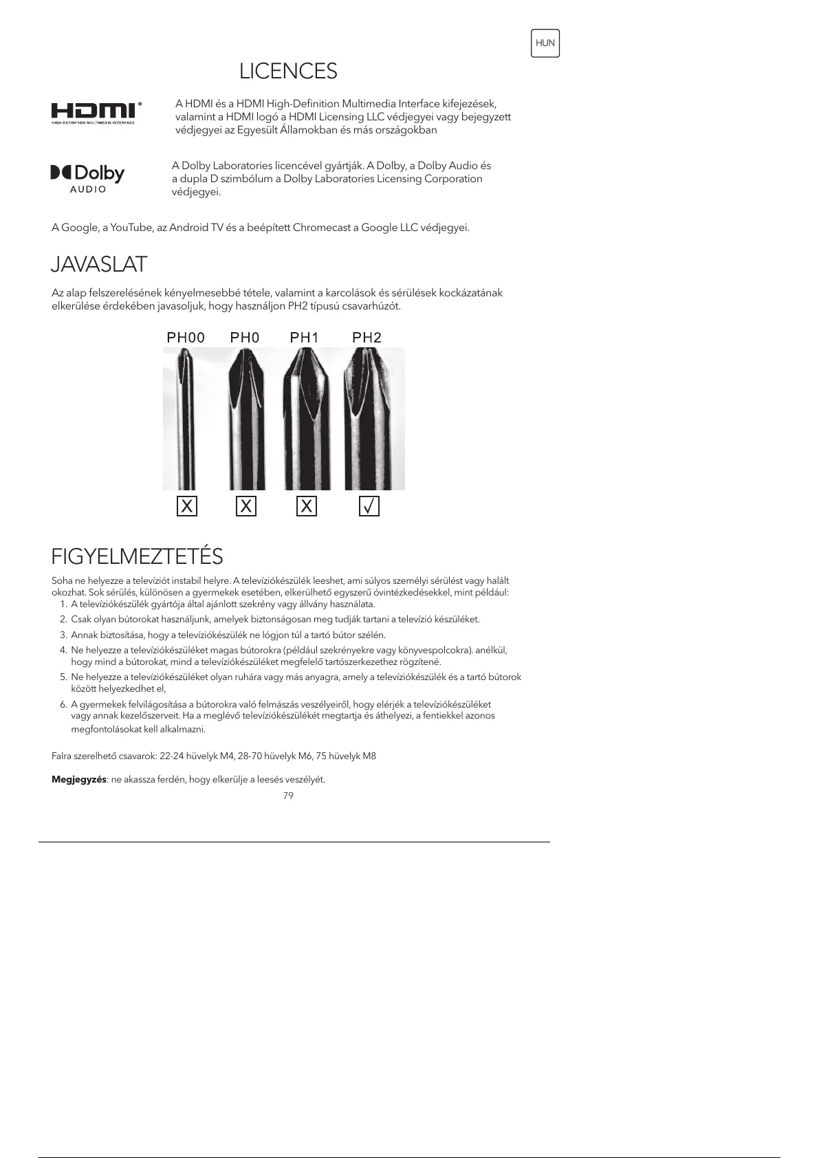 elkerülése érdekében javasoljuk, hogy használjon PH2 típusú csavarhúzót.