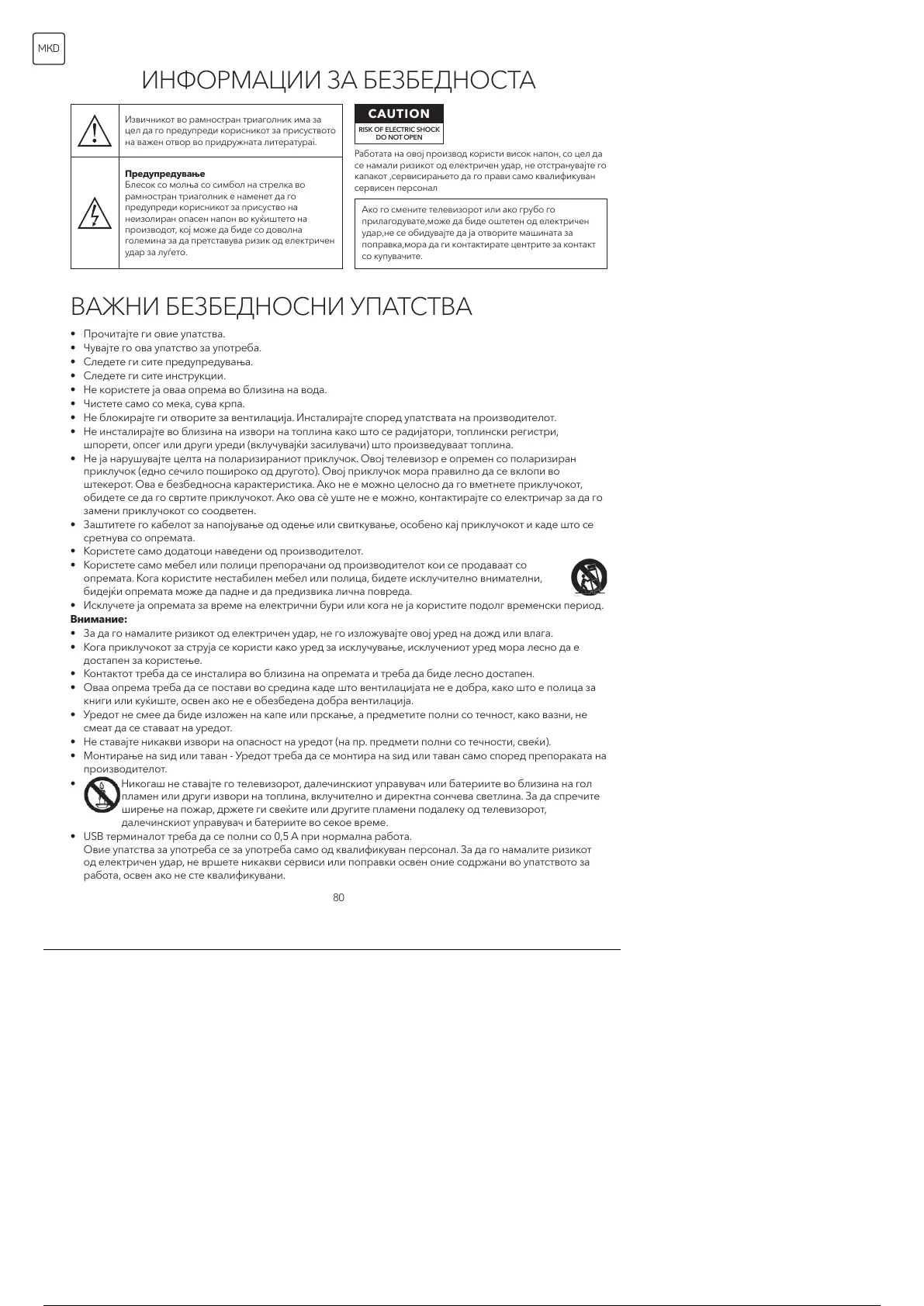 ширење на пожар, држете ги свеќите или другите пламени подалеку од телевизорот,