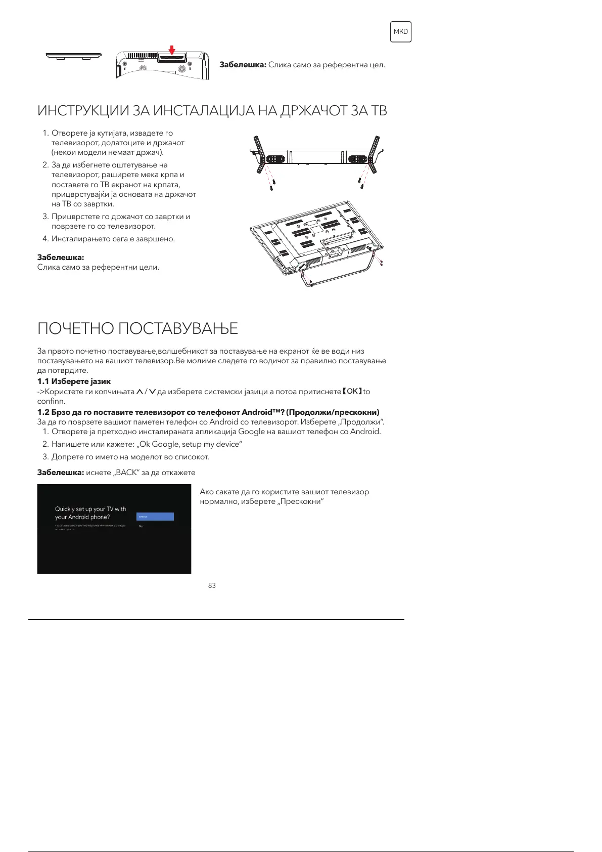 ИНСТРУКЦИИ ЗА ИНСТАЛАЦИЈА НА ДРЖАЧОТ ЗА ТВ