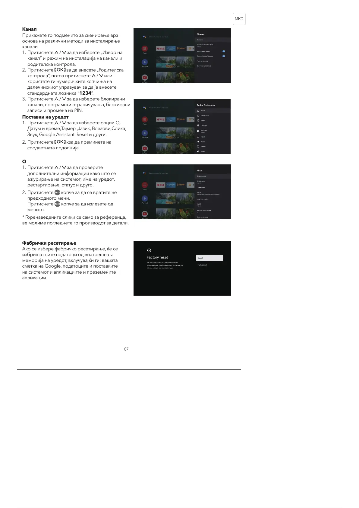 Ако се избере фабричко ресетирање, ќе се