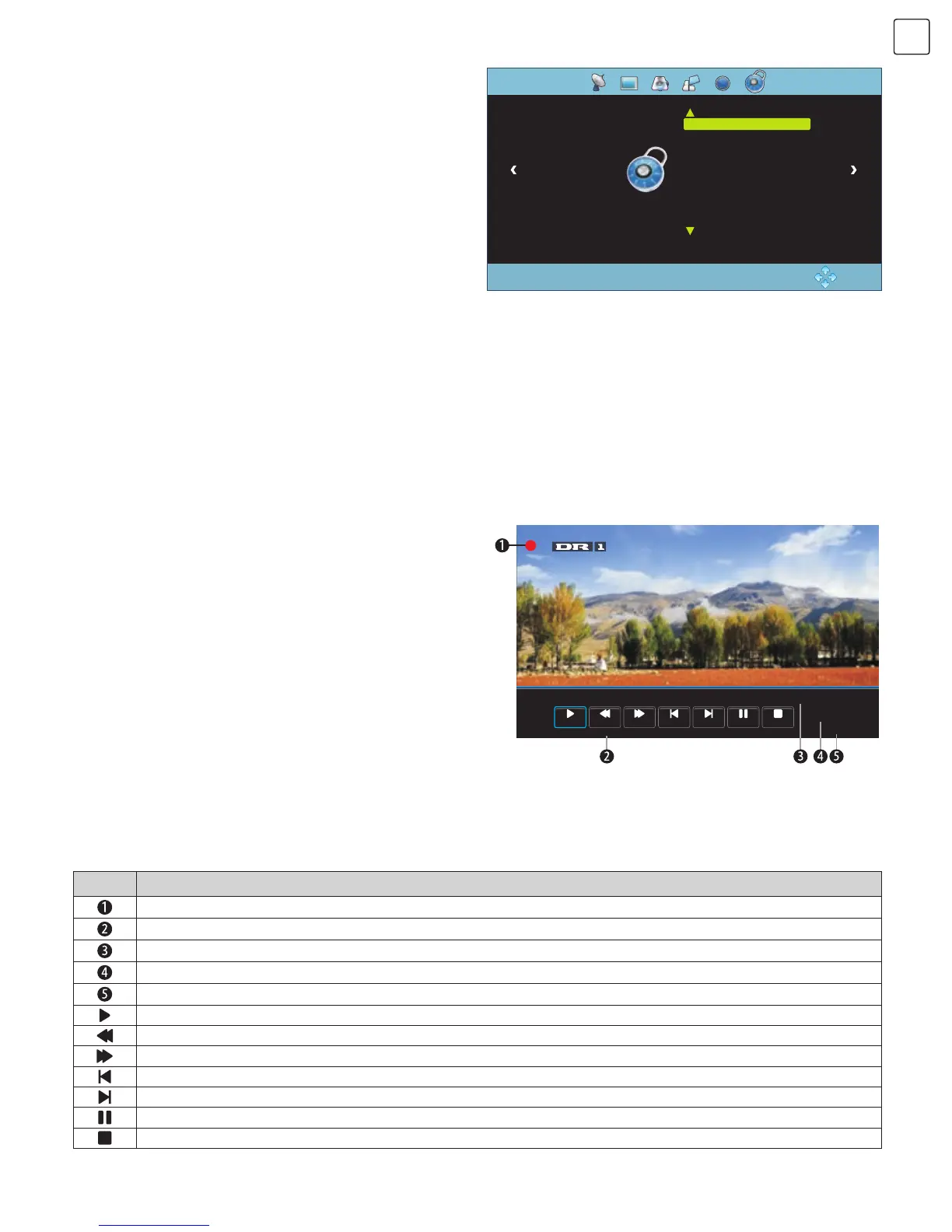 Stop: Zgjidhni këtë ikonë, shtypni butonin „OK“ për ndërprerje dhe braktisje të dritares për reproduktim