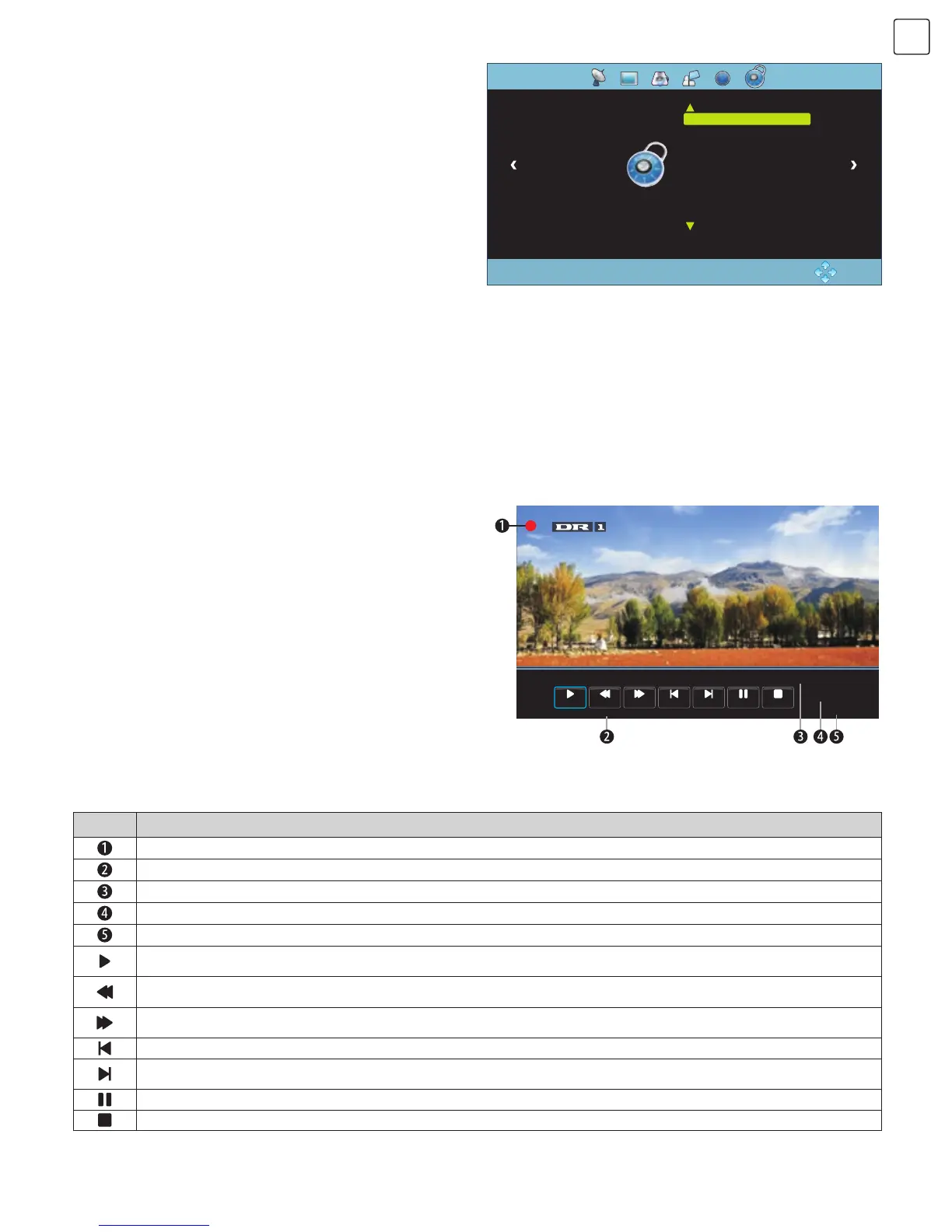 Reprodukcija (Play): Označite ovu ikonicu. Pritisnite tipku „OK“ za reprodukciju video sadržaja ili za podešavanje ponavljanja programa od