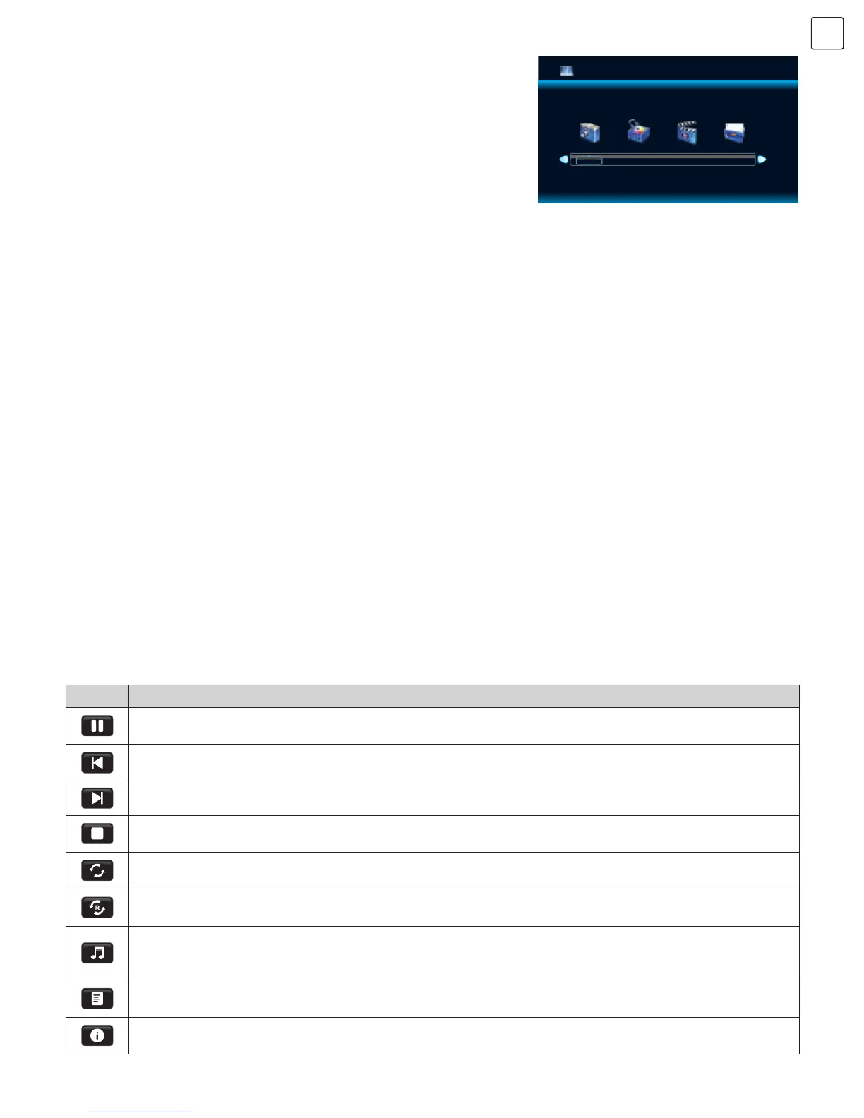 Zaustavljanje (Stop): Pritisnite tipku za odabir ove funkcije, pritisnite “OK” za zaustavljanje reprodukcije i