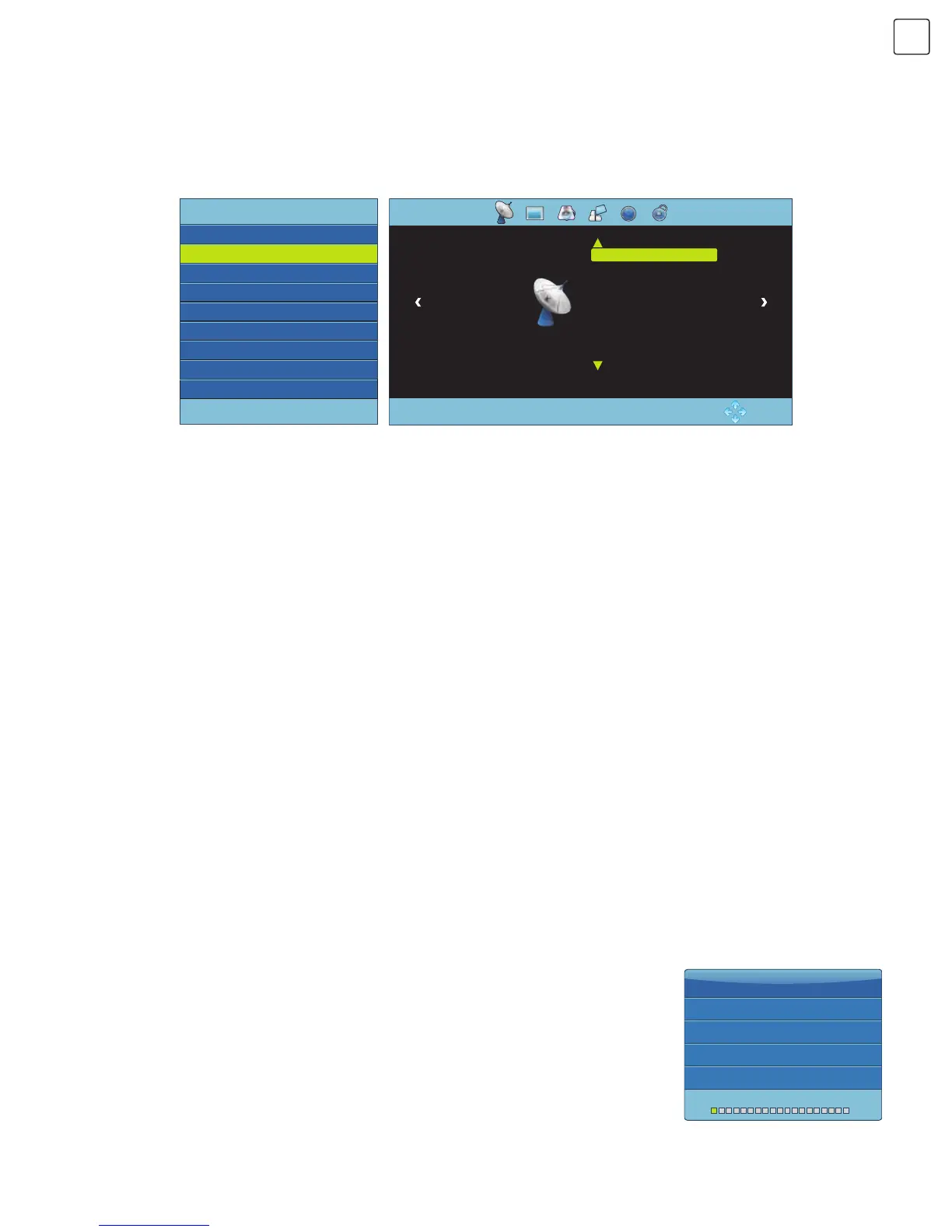 покажува „Изберете тип на DVB“; Притиснете копче „/“ на далечинскиот управувач