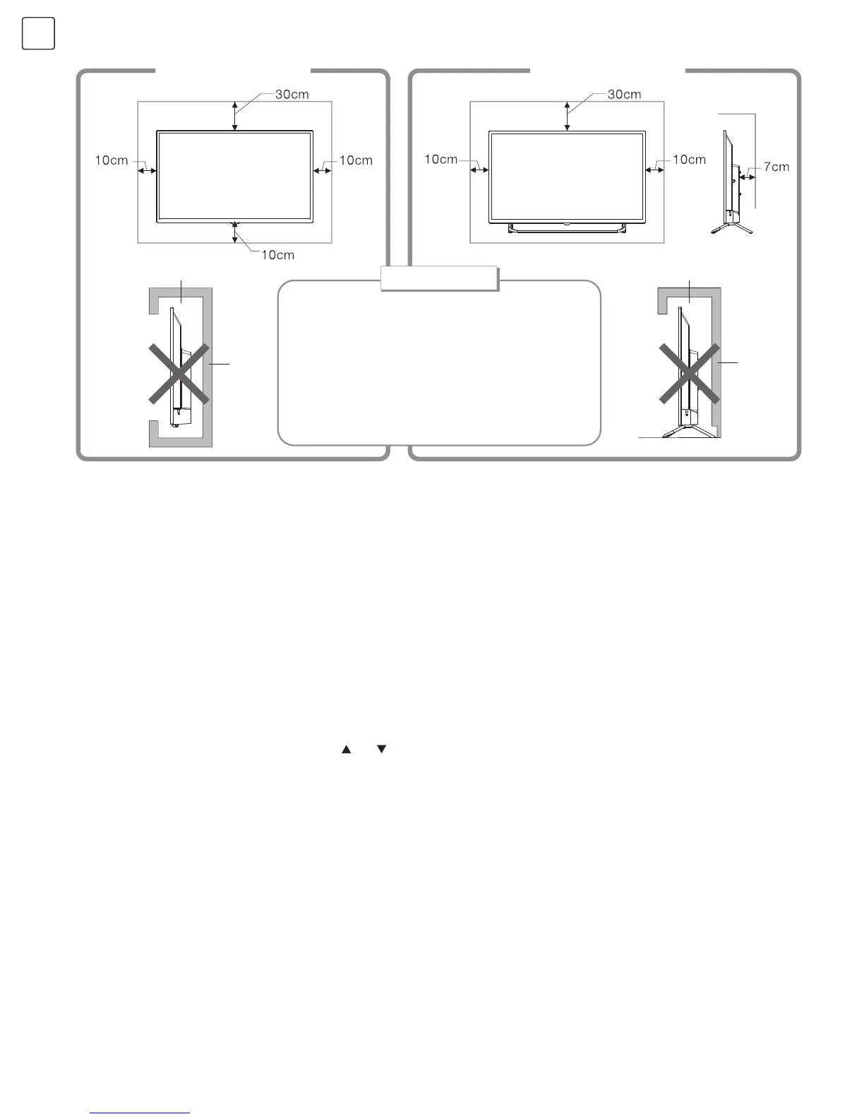 • Ostavite dovoljno prostora oko TV-a na način
