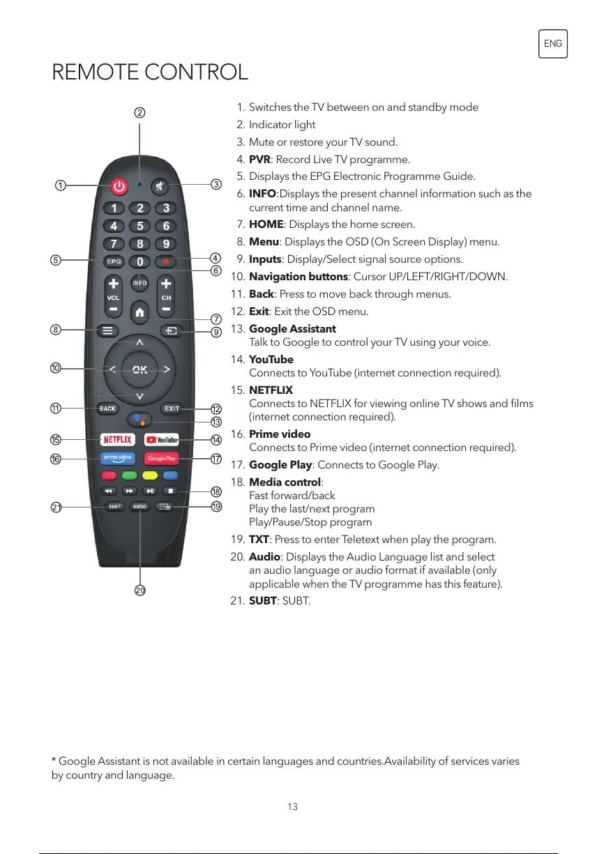 19. TXT: Press to enter Teletext when play the program.