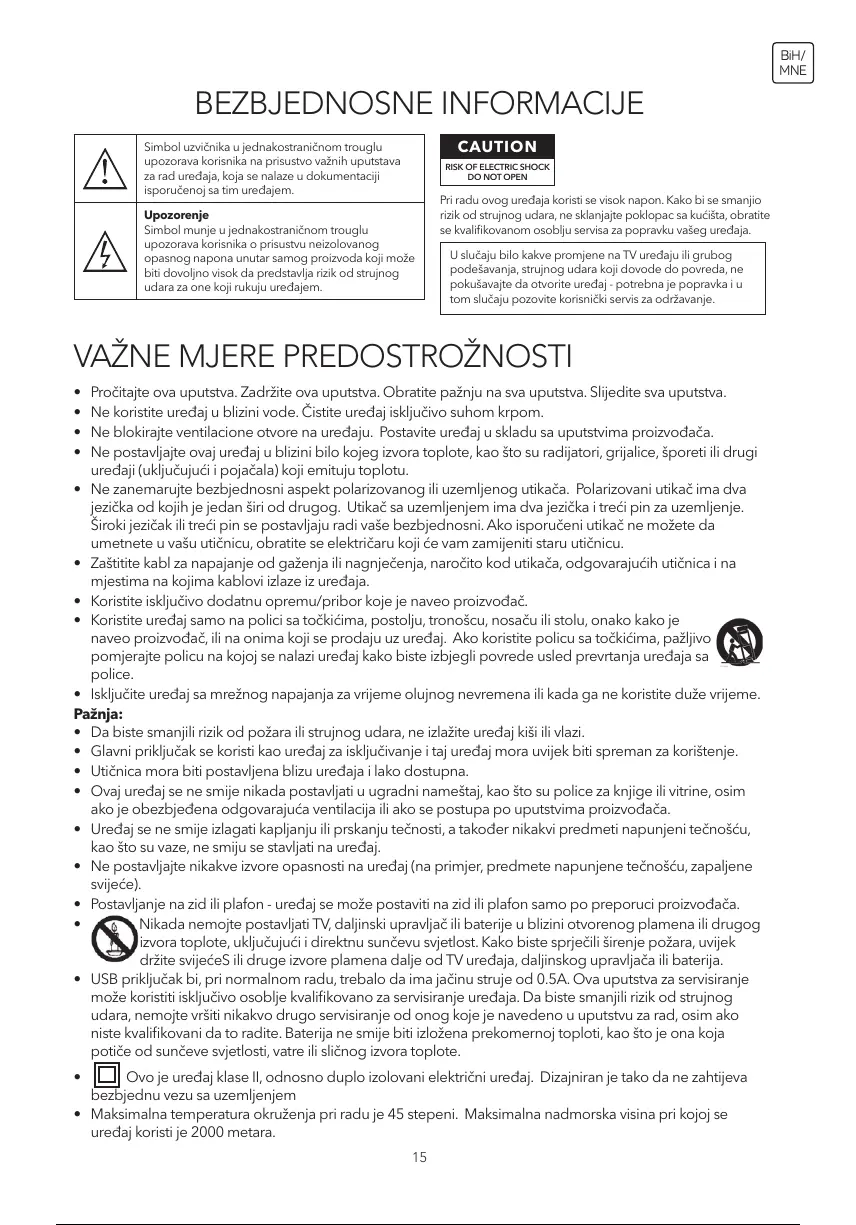 držite svijećeS ili druge izvore plamena dalje od TV uređaja, daljinskog upravljača ili baterija.