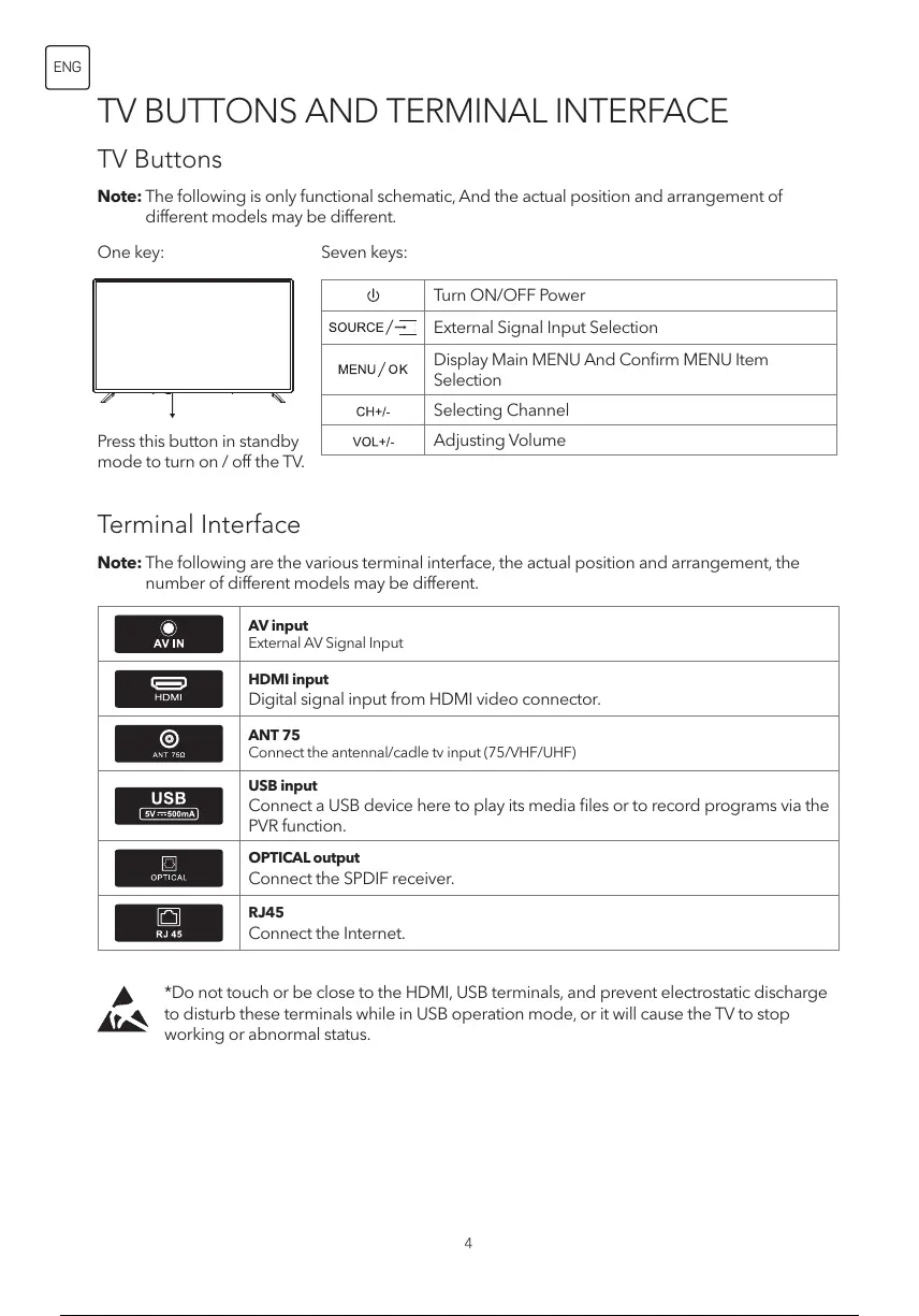 to disturb these terminals while in USB operation mode, or it will cause the TV to stop