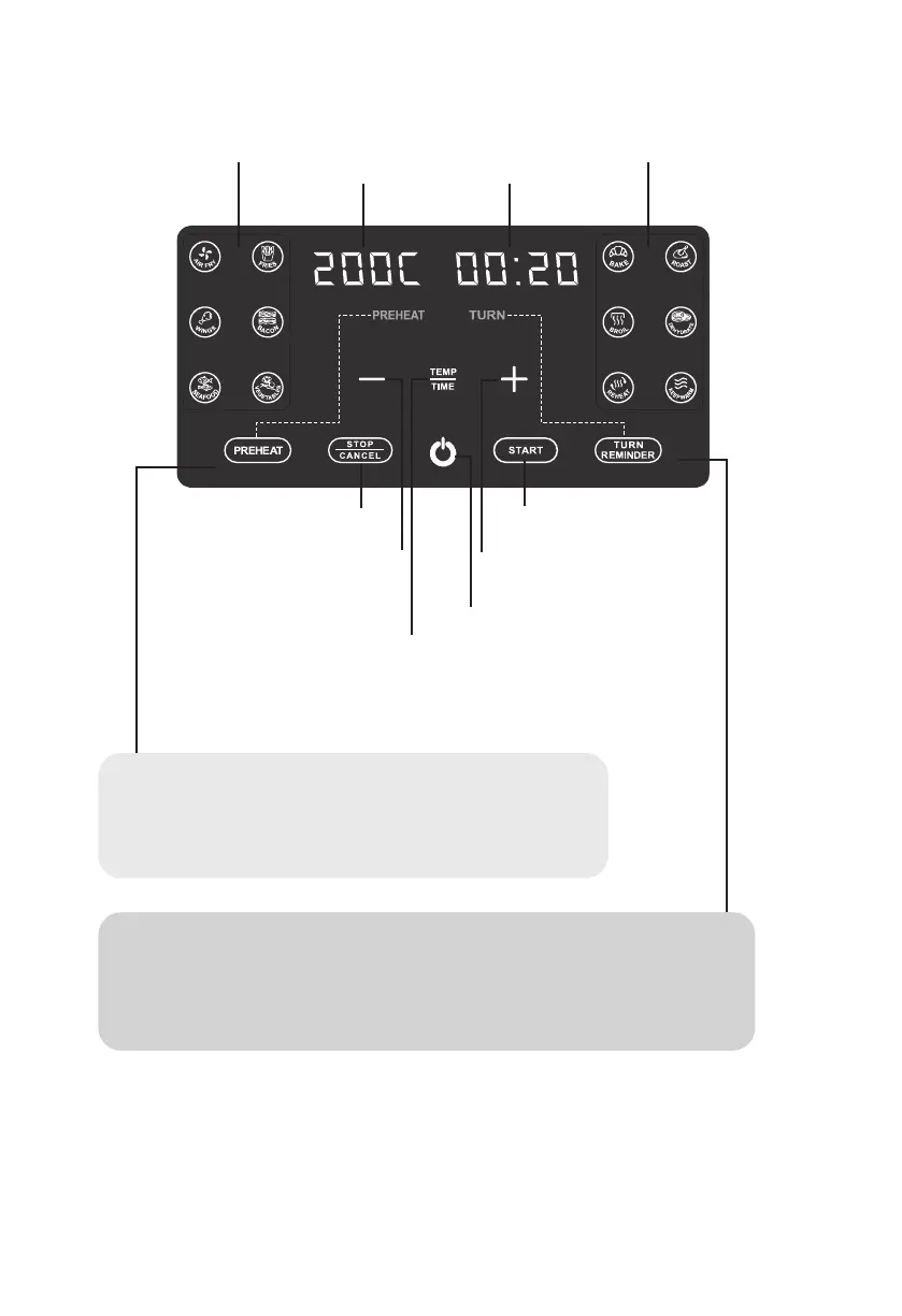 Когато е активирано, фритюрникът с горещ въздух ще се нагрее