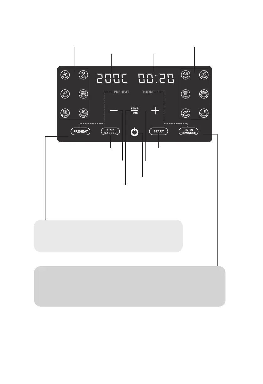 Când este activată, friteuza cu aer se va preîncălzi și vă va indica când să